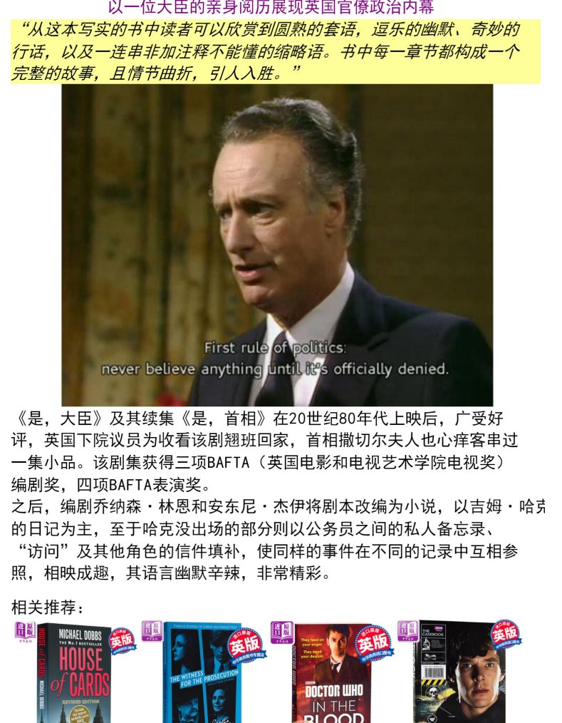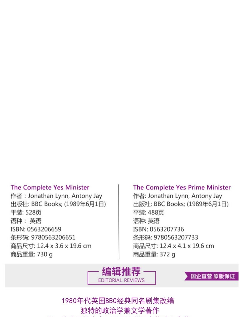 【中商原版】是 首相故事完整版+部长故事完整版英文原版 the complete yes prime minister BBC经典电视剧小说两册套装