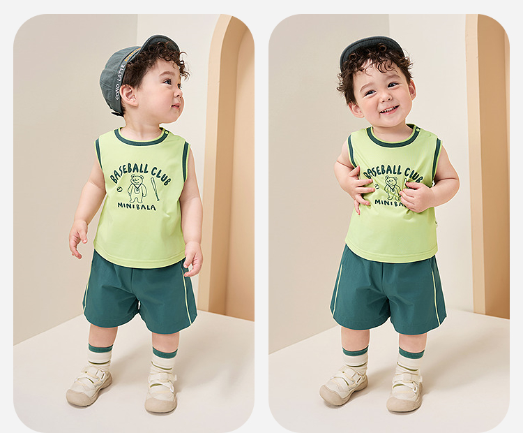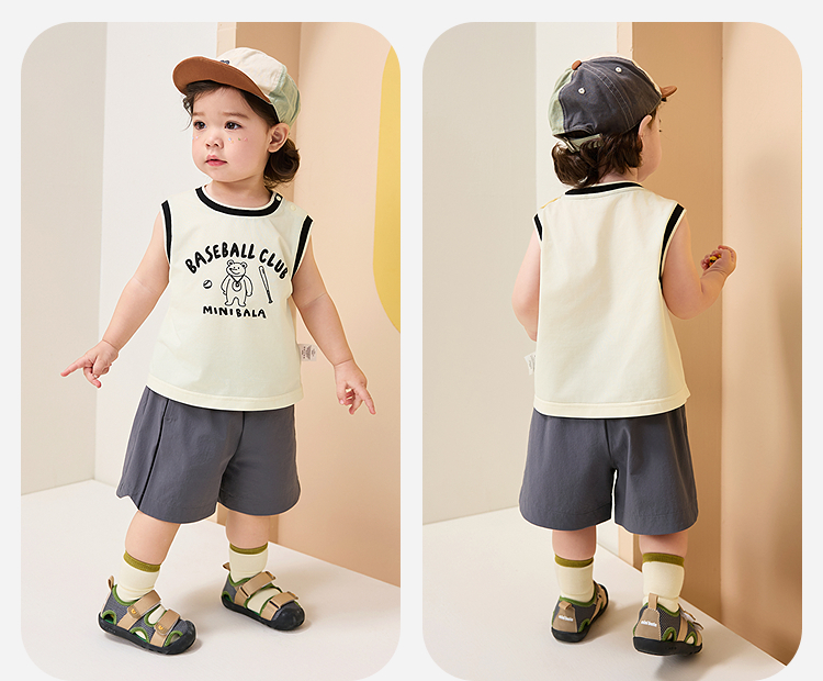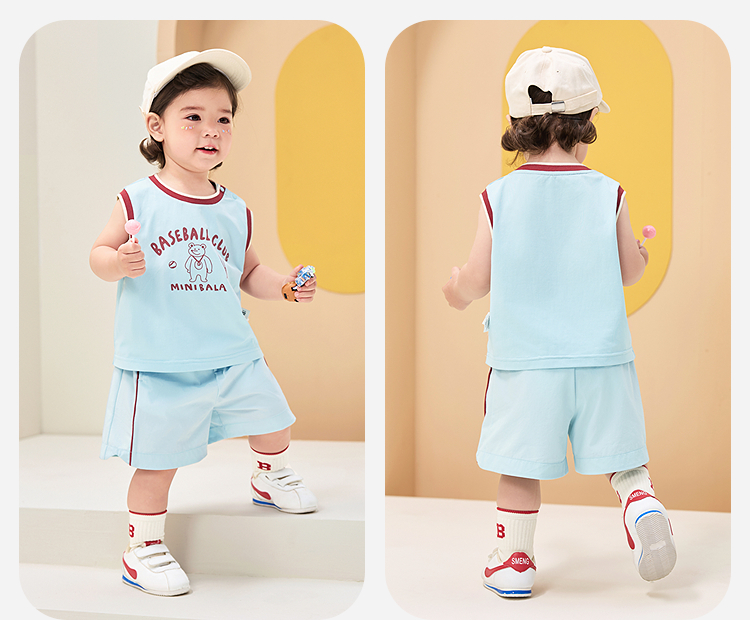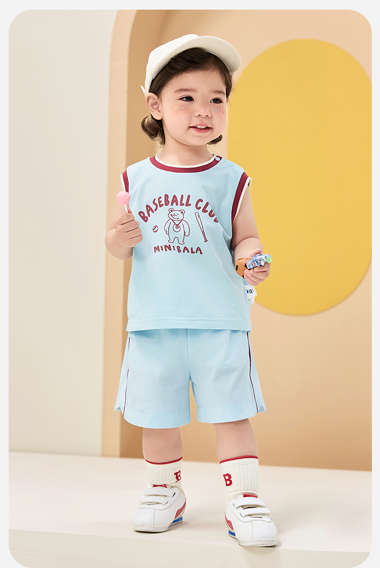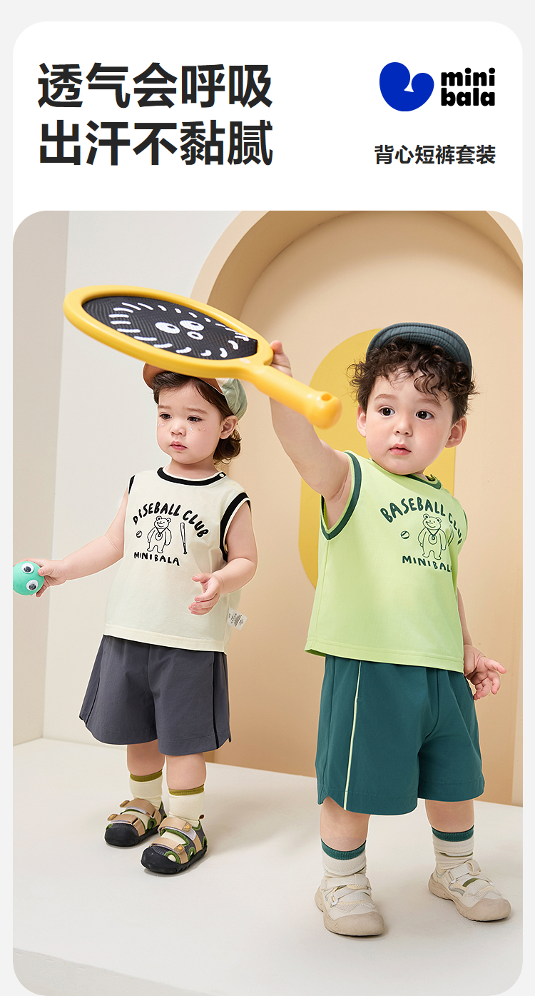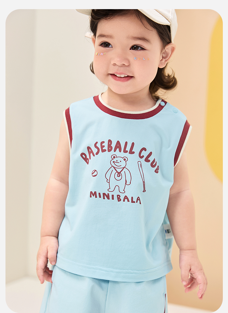 【吸湿速干】迷你巴拉短袖套装男女童亲肤透气背心短裤夏季
