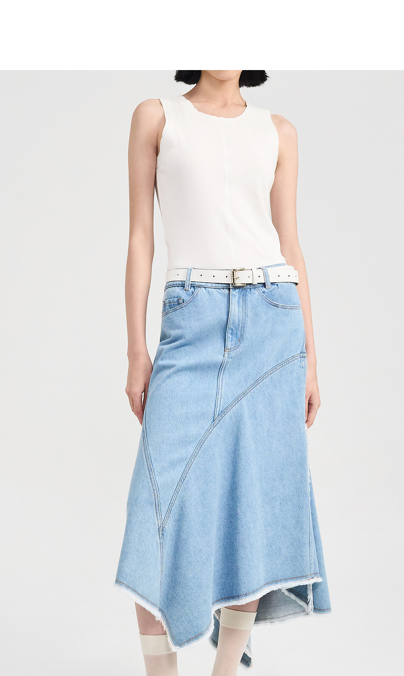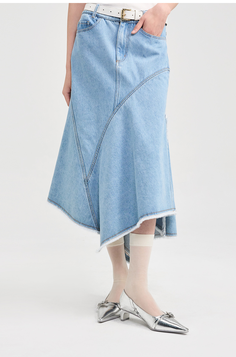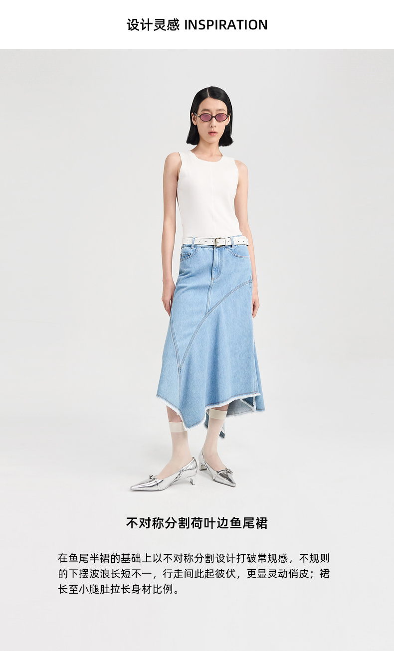 [捡漏价]lost in echo2024夏季新款原创不对称荷叶边修身牛仔裙鱼尾半身裙