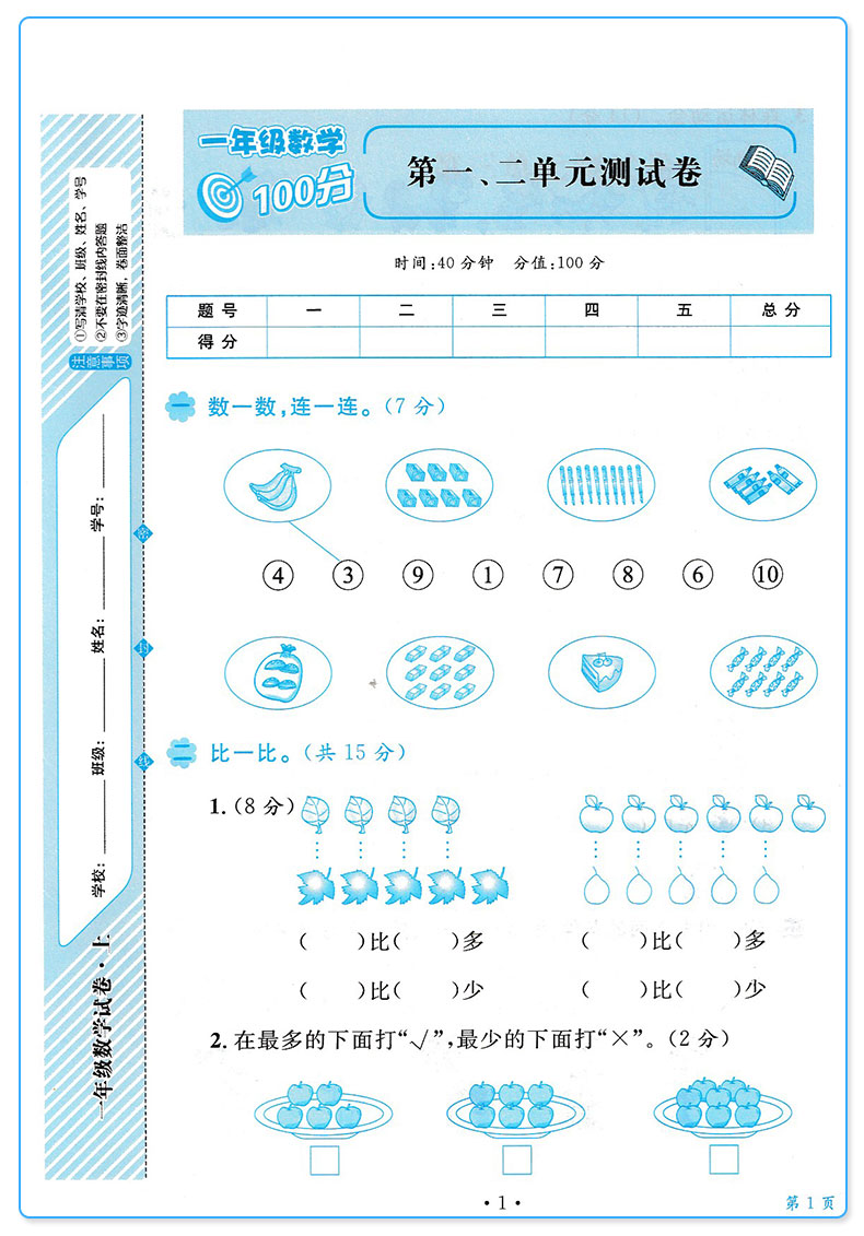 一年级数学试卷上册 人教版 尤博士大考卷过关冲刺100分 1年级上/一年级第一学期单元卷 专项卷 期中卷 期末卷 真题卷考试卷子
