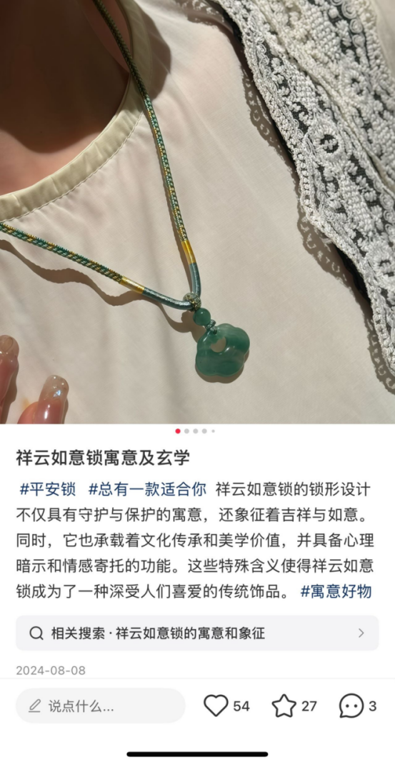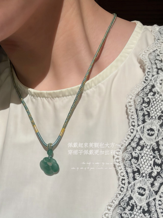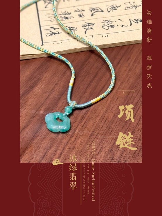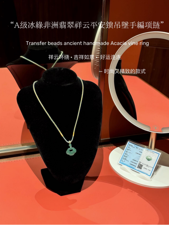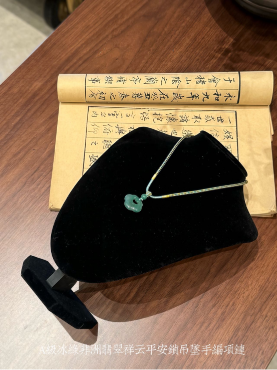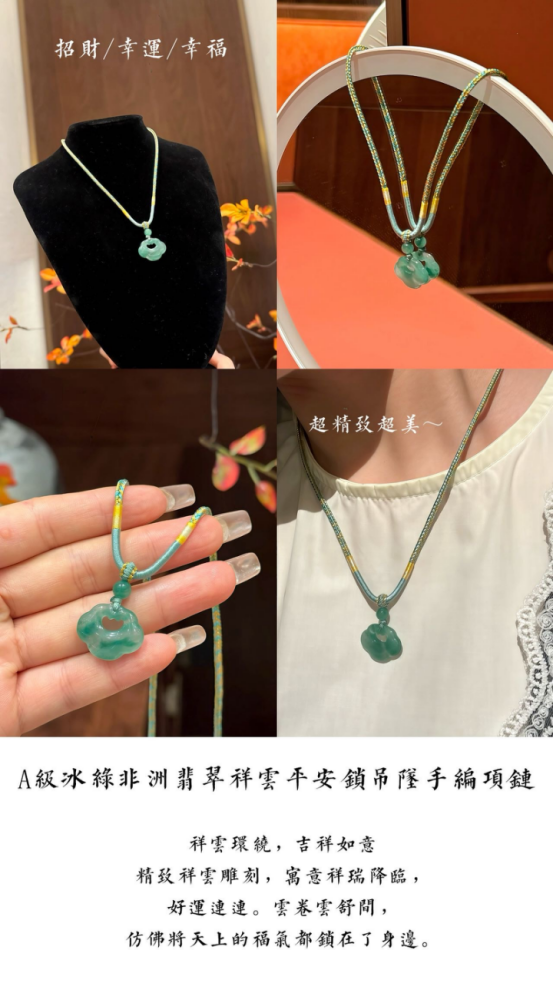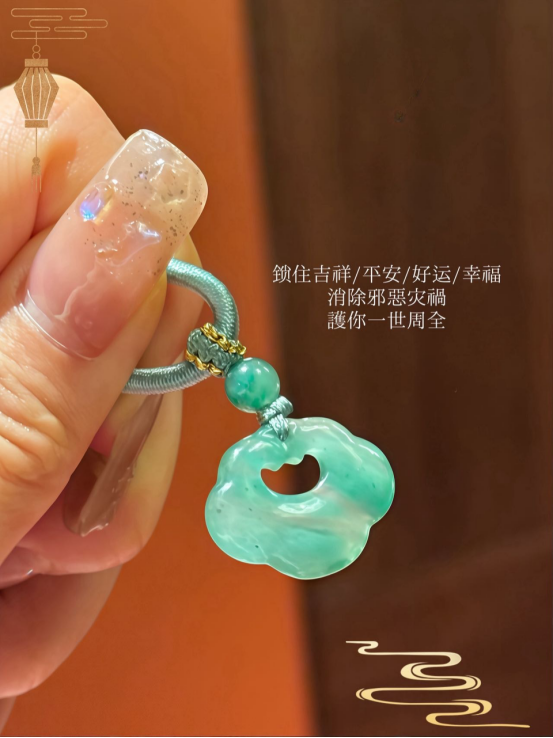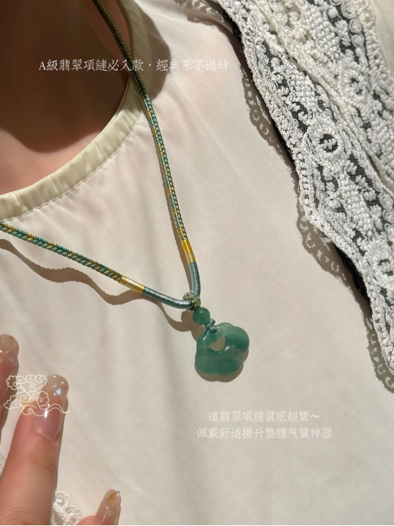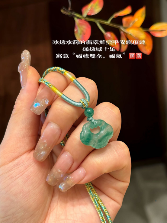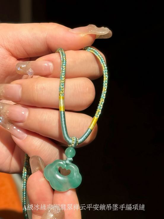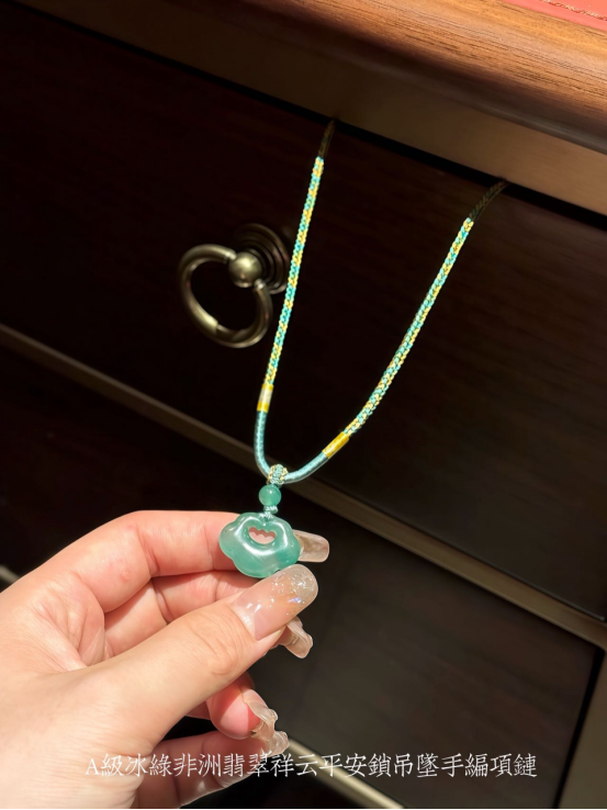 🎈【香港周六福黄金钻石首饰集团】⭐A级冰绿非洲翡翠祥云平安锁吊坠手编项链 🔥把东方美学刻进骨子里,晶莹剔透 ❤️上手瞬间高级感 贵气直接拉满,超级显白!