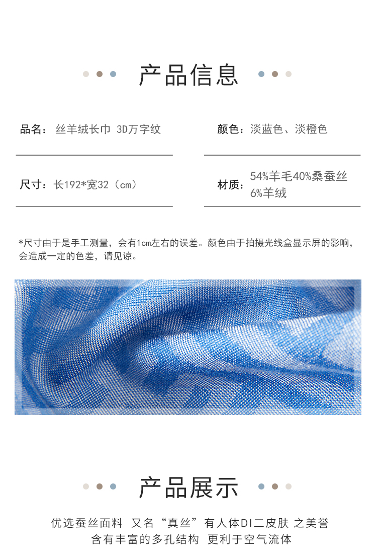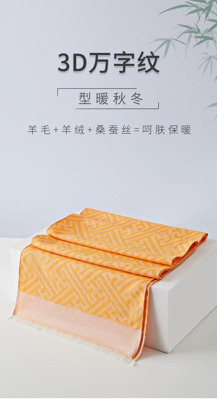 SAINTJOY/上久楷丝羊绒围巾 长巾 3D万字纹CJS22042