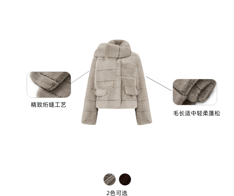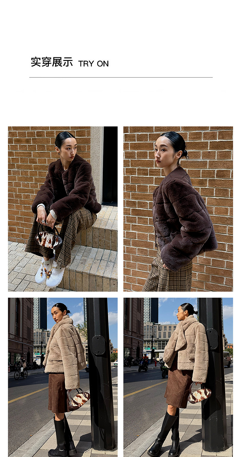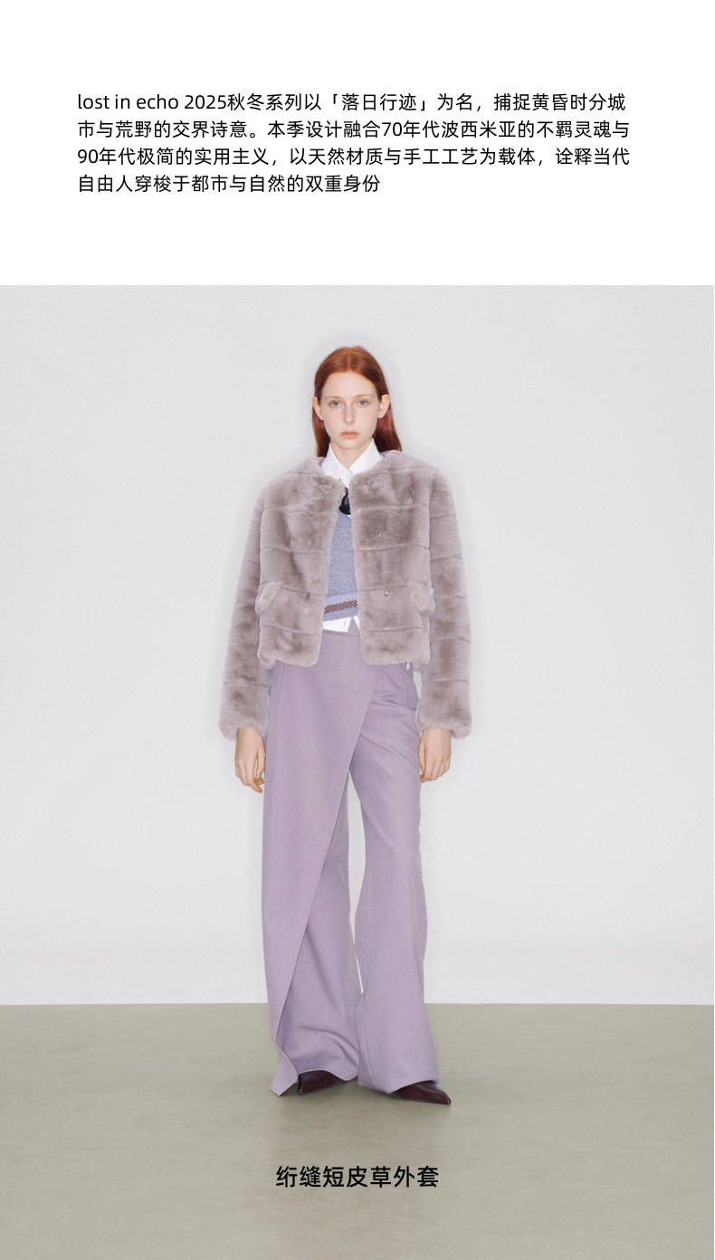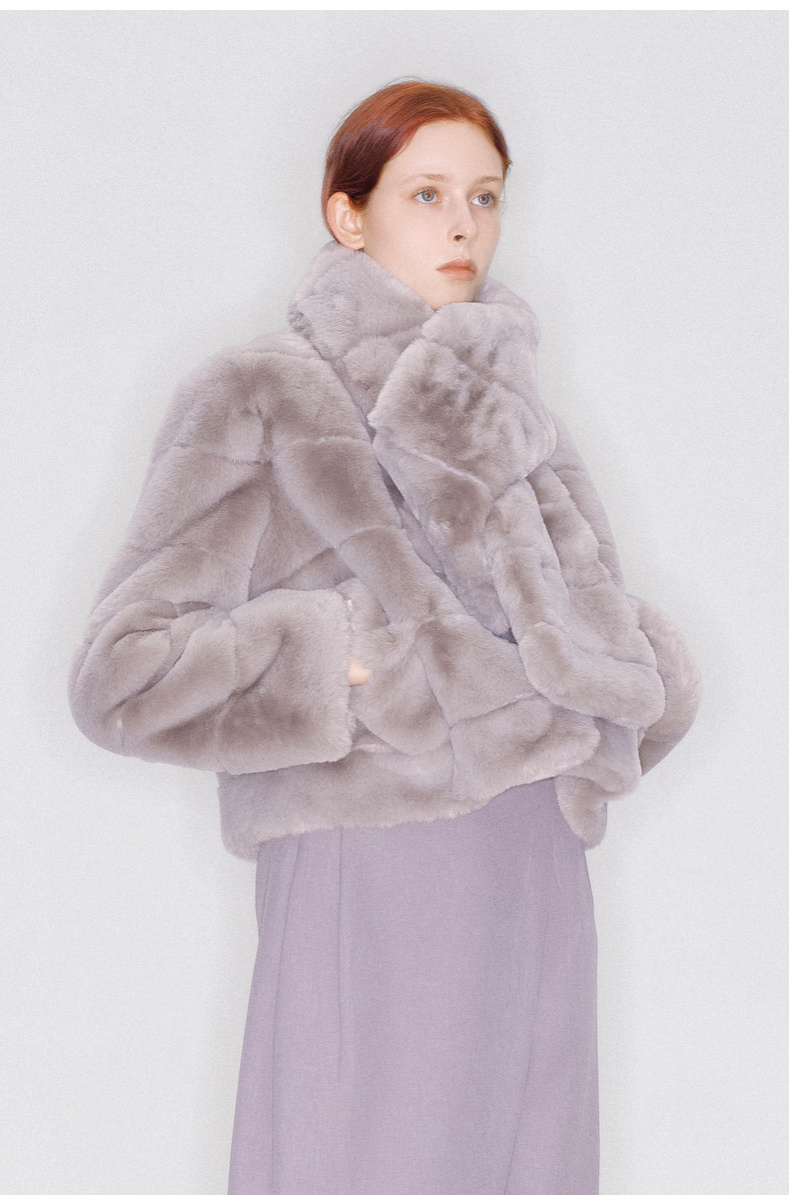 lost in echo2025秋冬新款时尚复古立体绗缝短款保暖皮草外套女