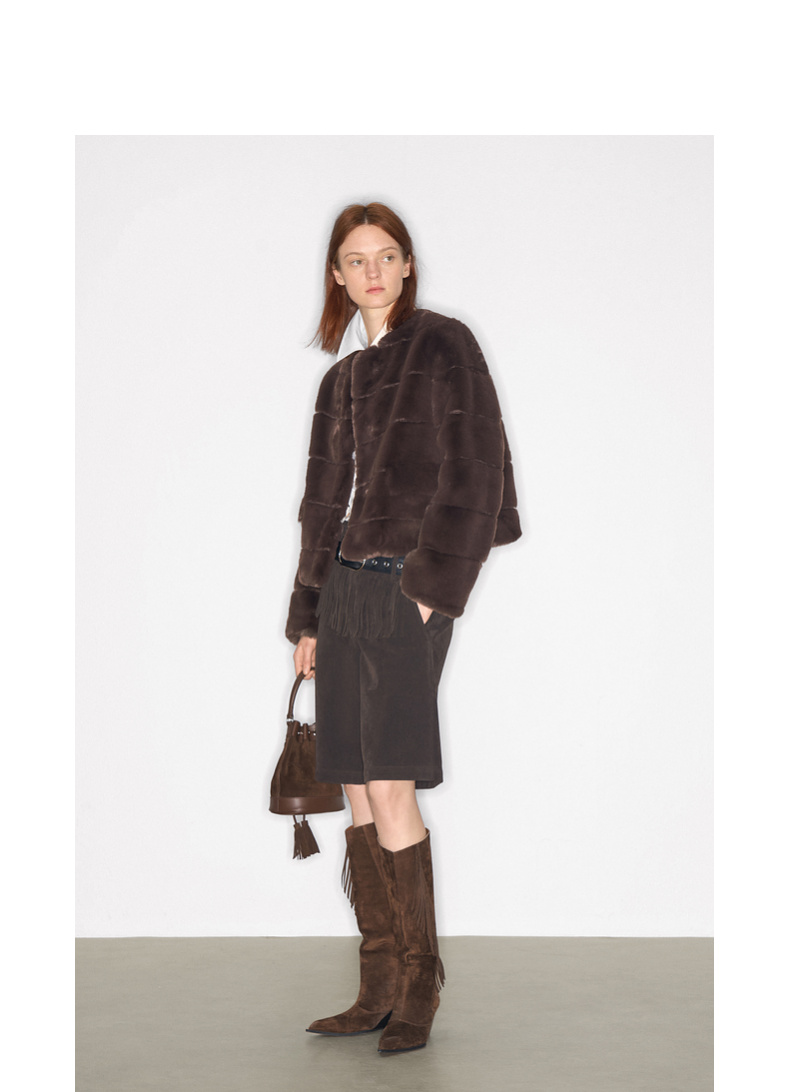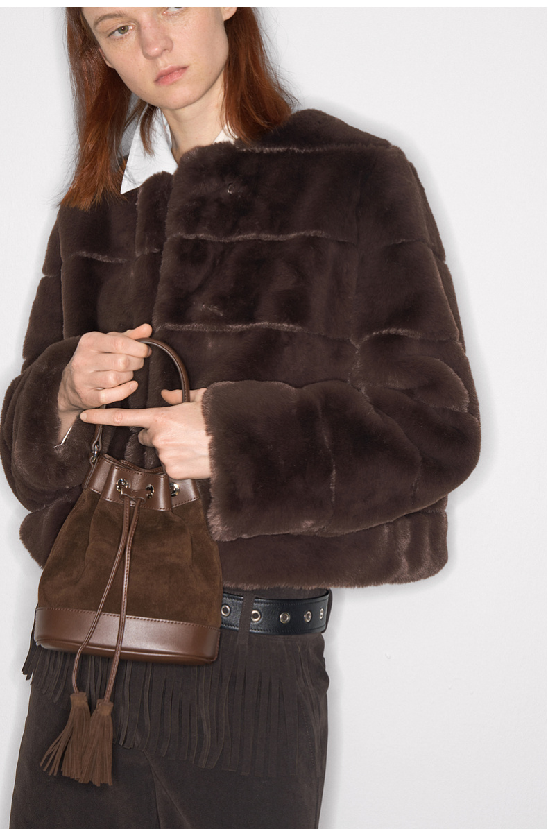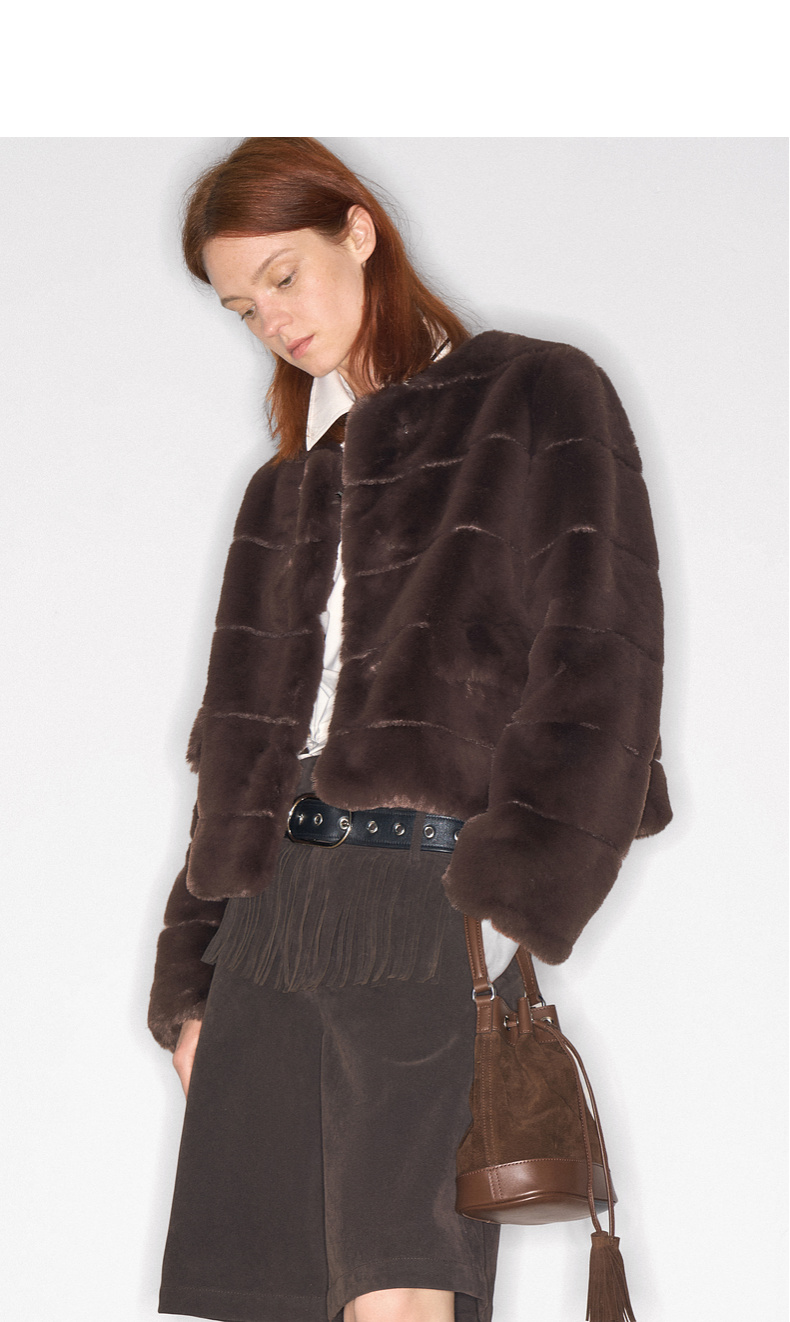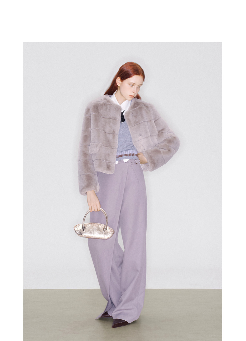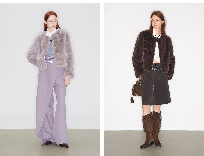 lost in echo2025秋冬新款时尚复古立体绗缝短款保暖皮草外套女