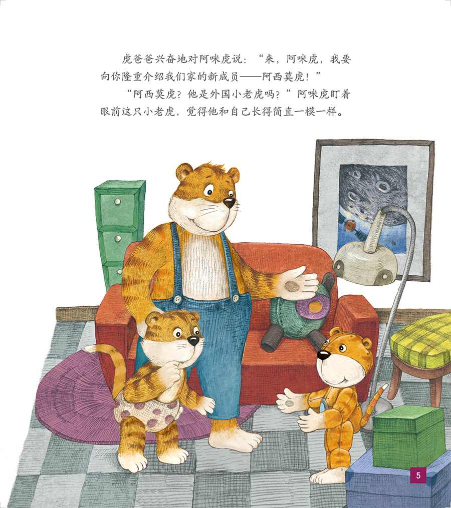 故事内容:阿咪虎的家里来了新客人,是一只AI机器虎,大家给他取名阿西虎。阿西虎会模仿其他人的动作,还拥有超强的计算能力,但有时候也会闹笑话。