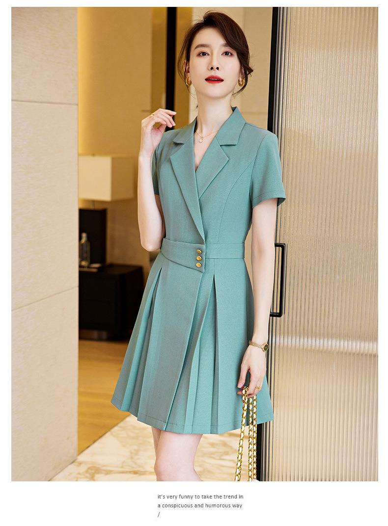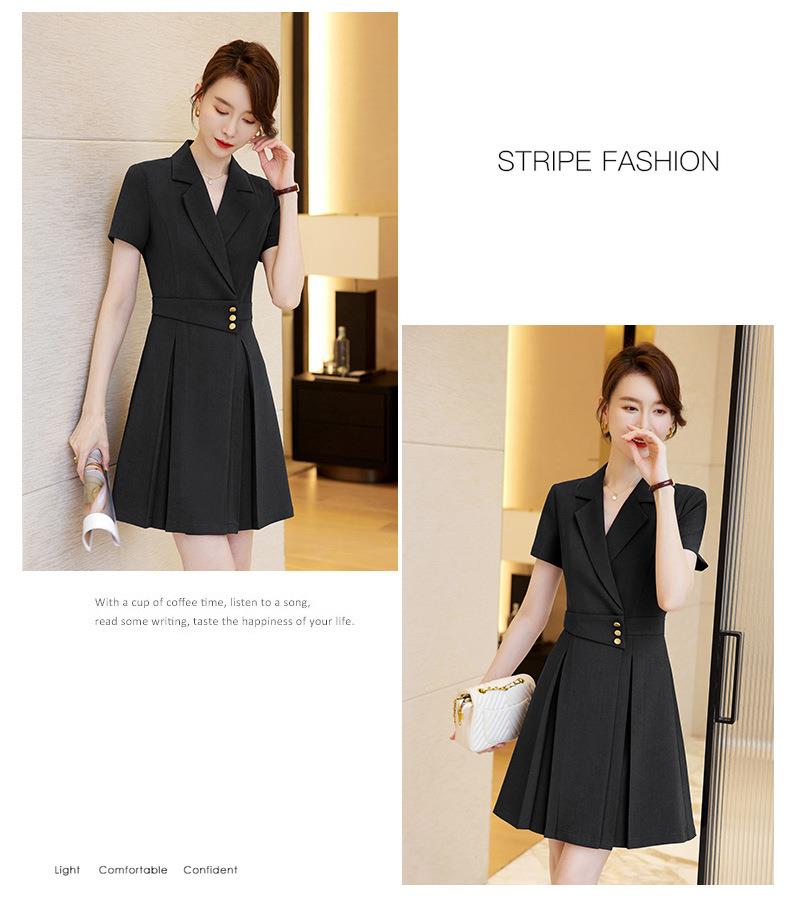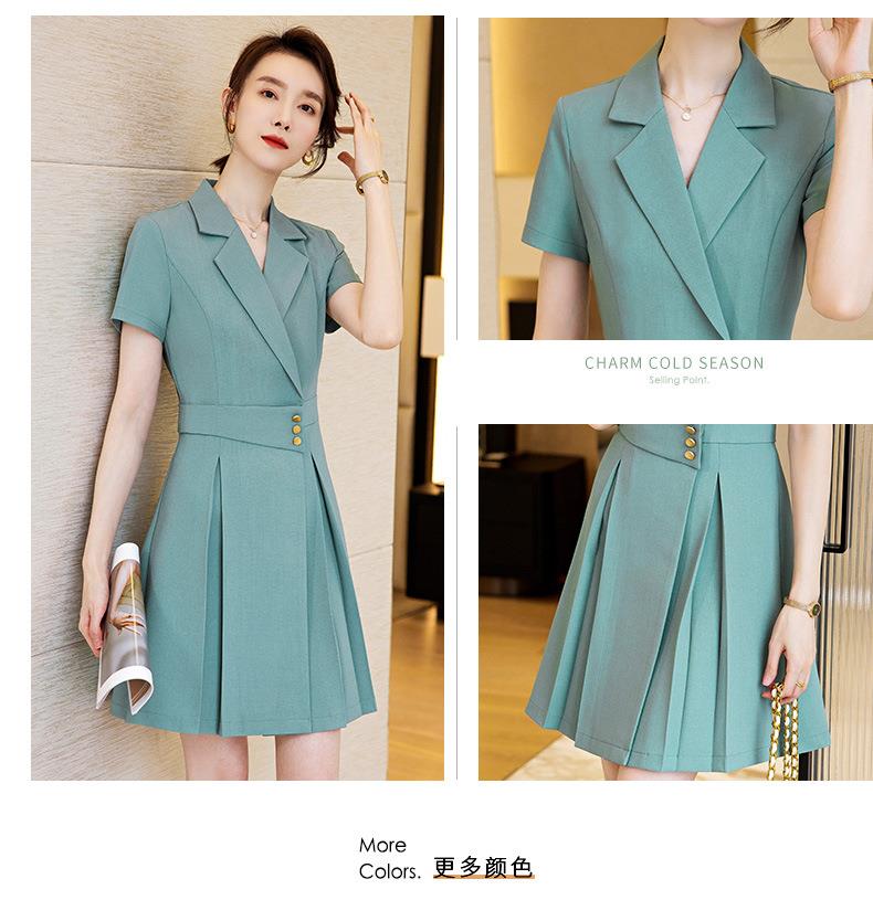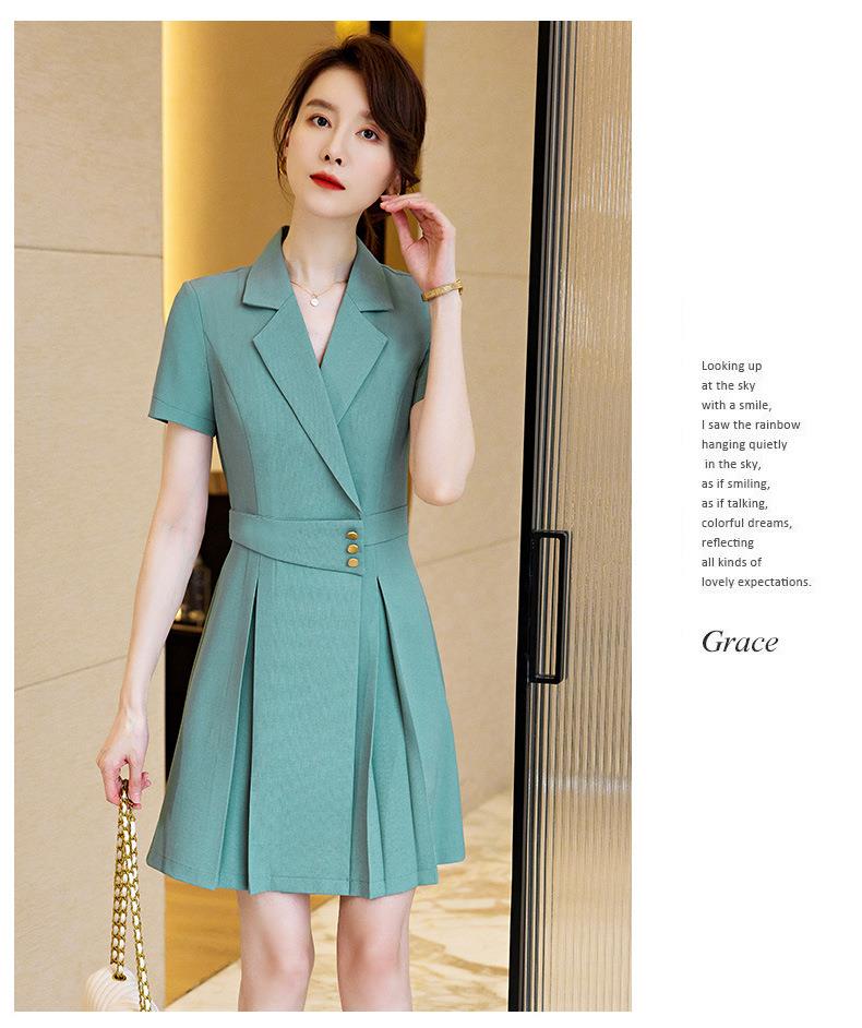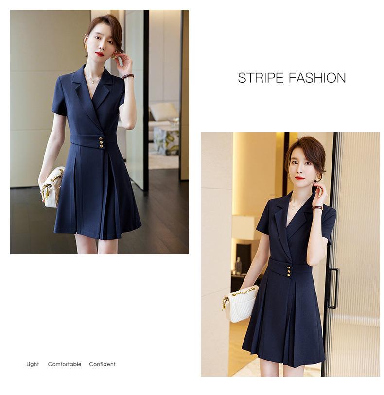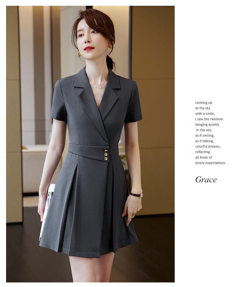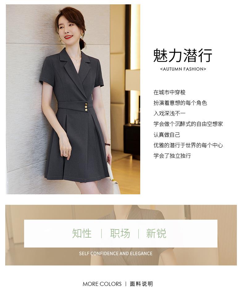 娜璐多 夏款西装连衣裙女职业装气质女神范高级感百褶裙OL收腰显瘦薄款夏