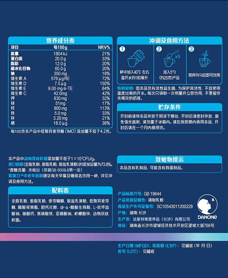 【私域专享·爆5折】800g*6罐达能敢迈中老年奶粉 高钙80亿益生菌0蔗糖低GI富硒 家庭分享装