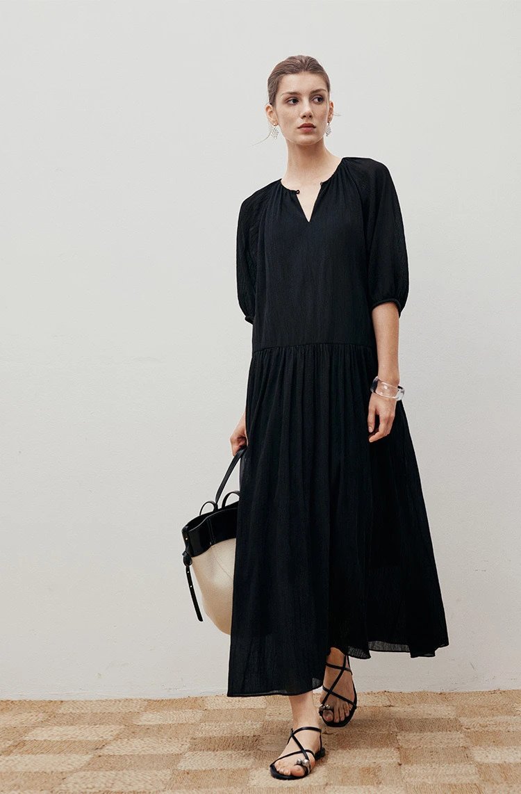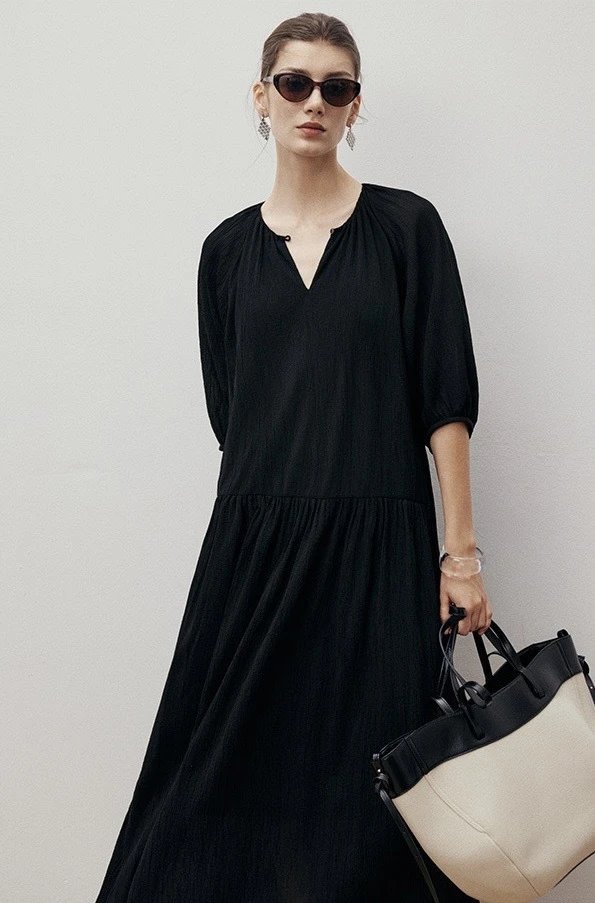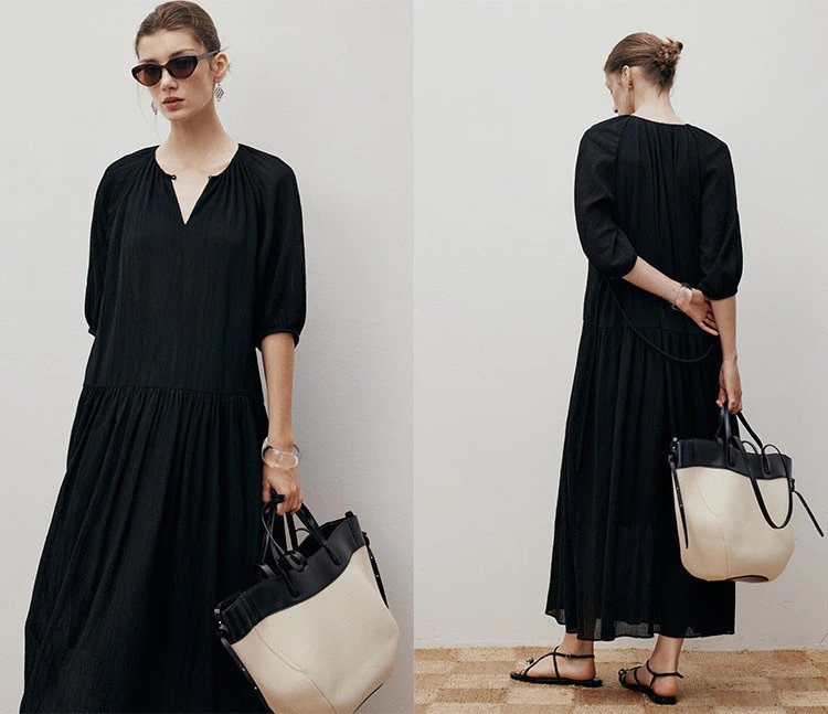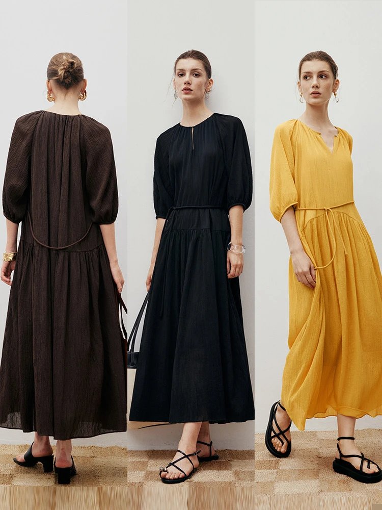 LPIUTY品牌直发⚠️品牌尾单⚠️大女人自由的风度⚠️Maxma*a同源工厂面料⚠️“黑标面料”意大利进口天丝⚠️木纹水波连衣裙⚠️三色可选