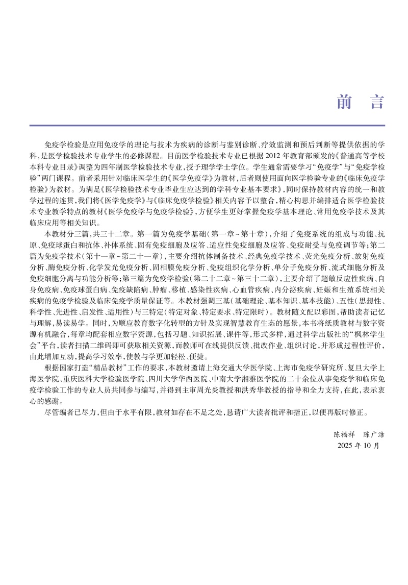 医学免疫学与免疫学检验 第2二版 普通高等教育医学类系列教材 十四五普通高等教育本科规划教材 陈福祥 陈广洁 主编 科学出版社