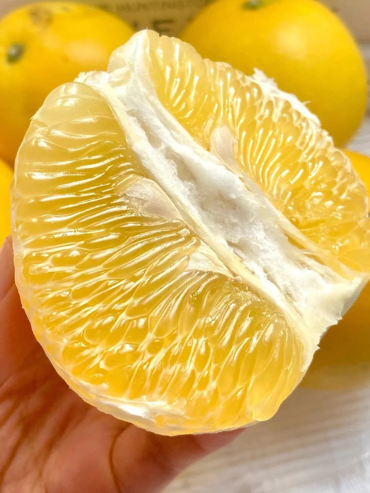 皮薄肉厚,清甜无酸,肉嫩爆汁 像柚子一样去掉白膜吃果肉😋 葡萄柚减肥降脂,是美容养颜圣品 医学界公认的具食疗功效的水果👍 可以降低血液胆固醇,清火去燥 润肺,天然的叶酸补充剂🔥