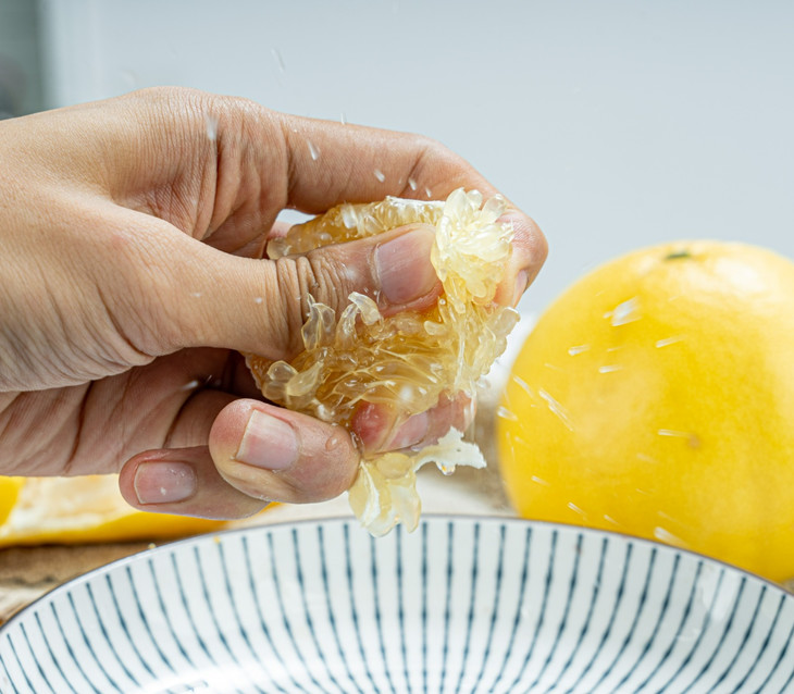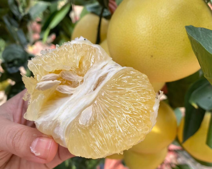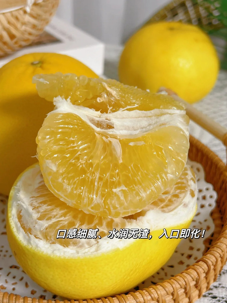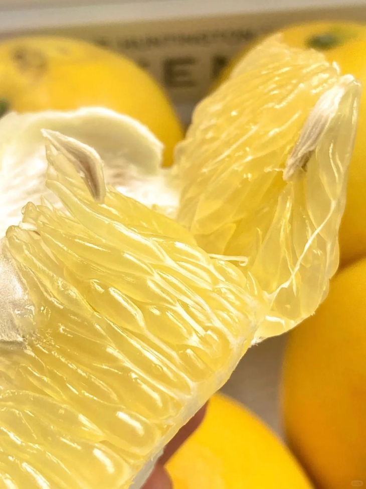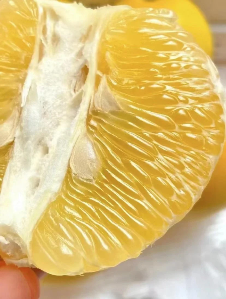 拿一块嫩乎乎的果肉塞进嘴里 就好似一块刚做好的“嫩豆腐”入口即化,是非常细腻的体验。 果汁从一颗颗果粒中荡漾出来 清甜清甜的柚汁几乎0酸,不属浓甜 吃一口就能体验到清爽畅心的快乐。