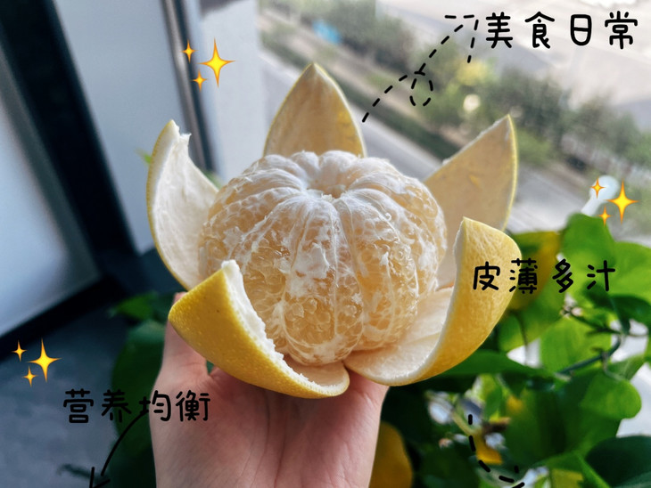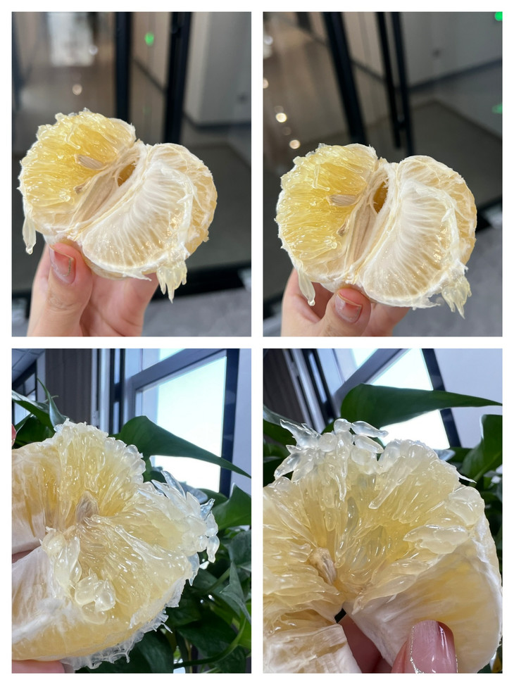 果冻般的口感,满满VC能量🍊 果皮薄如橘皮,果肉晶莹剔透 十分细嫩,咬一口流连忘返 收到以后,多放两天,皮皱皱的 果肉甜度升高,味道最佳