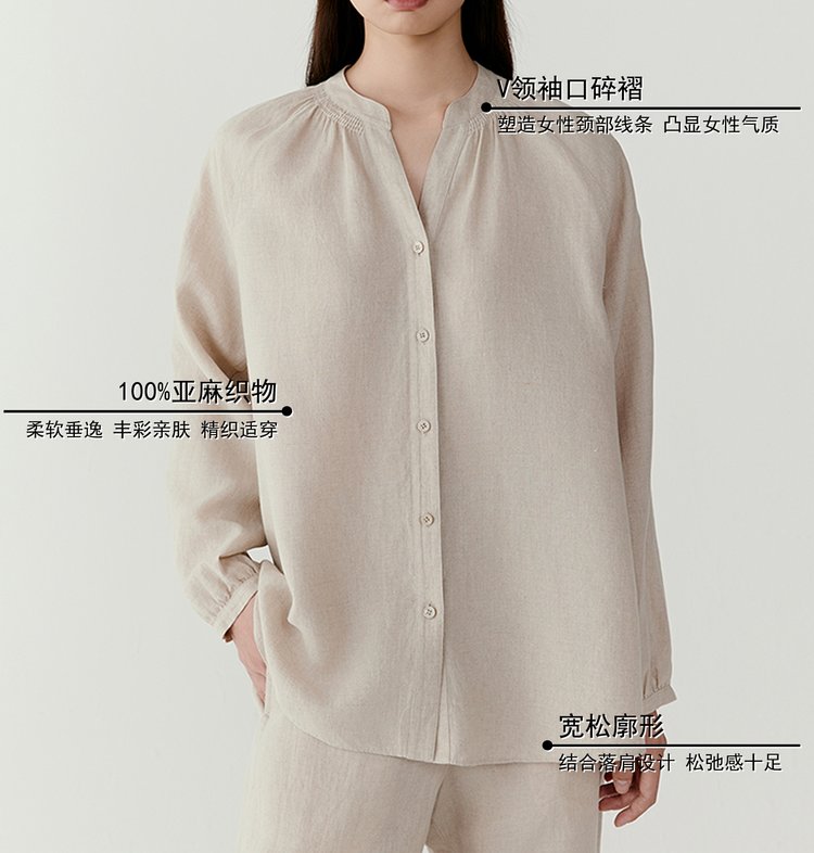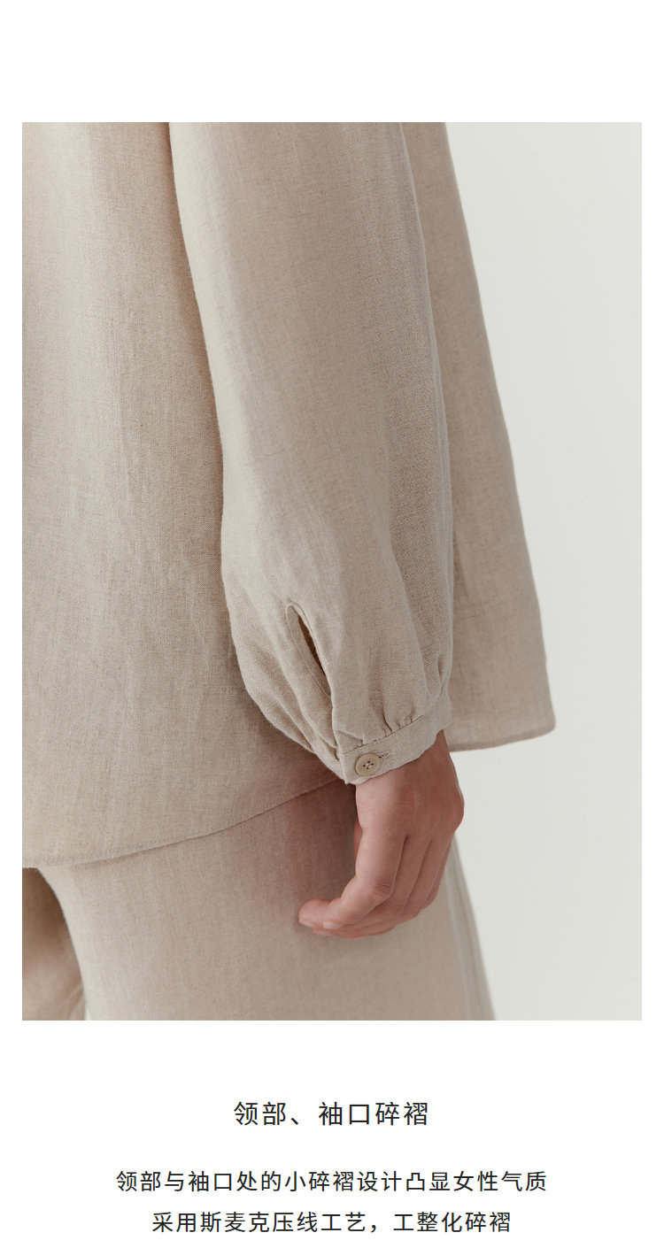 可与同组亚麻衬衫搭配,展现轻松优雅的穿搭风格