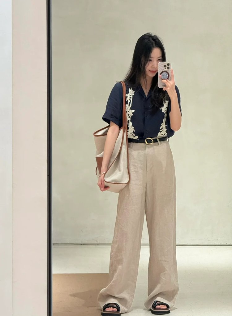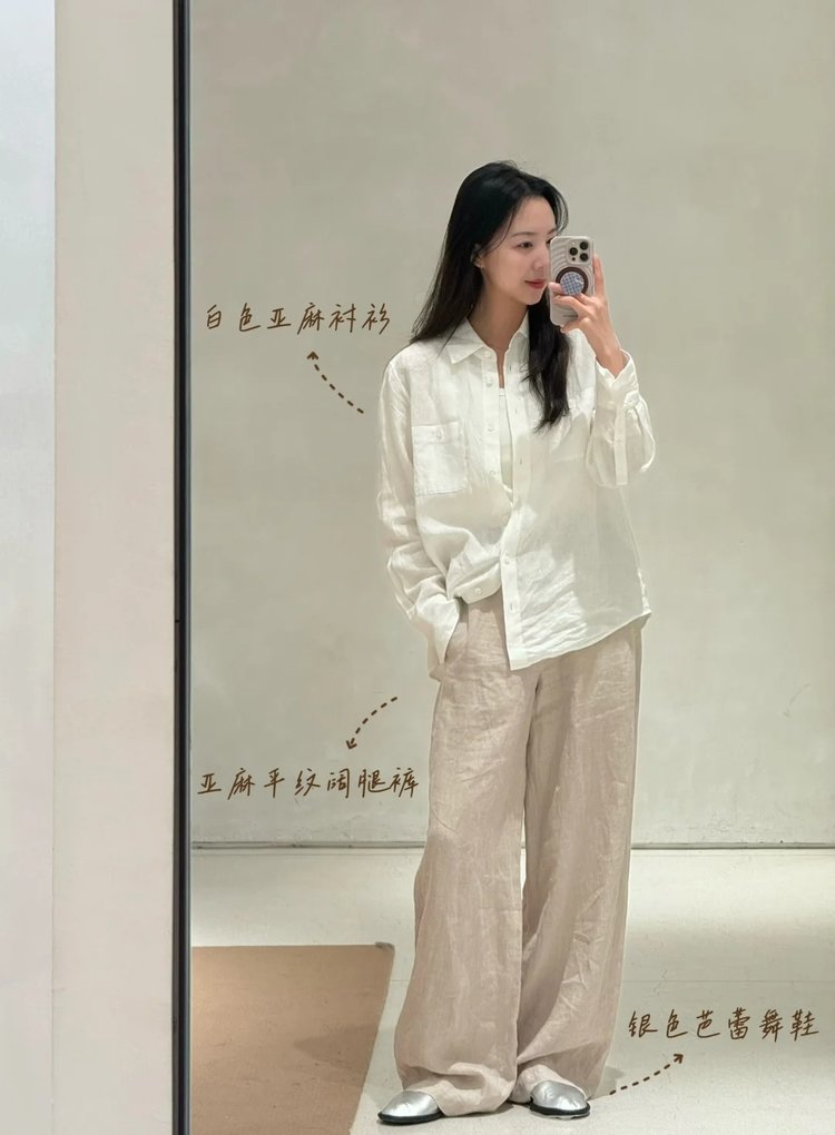 亚麻阔腿裤淡人感,原色之美,低调即高级