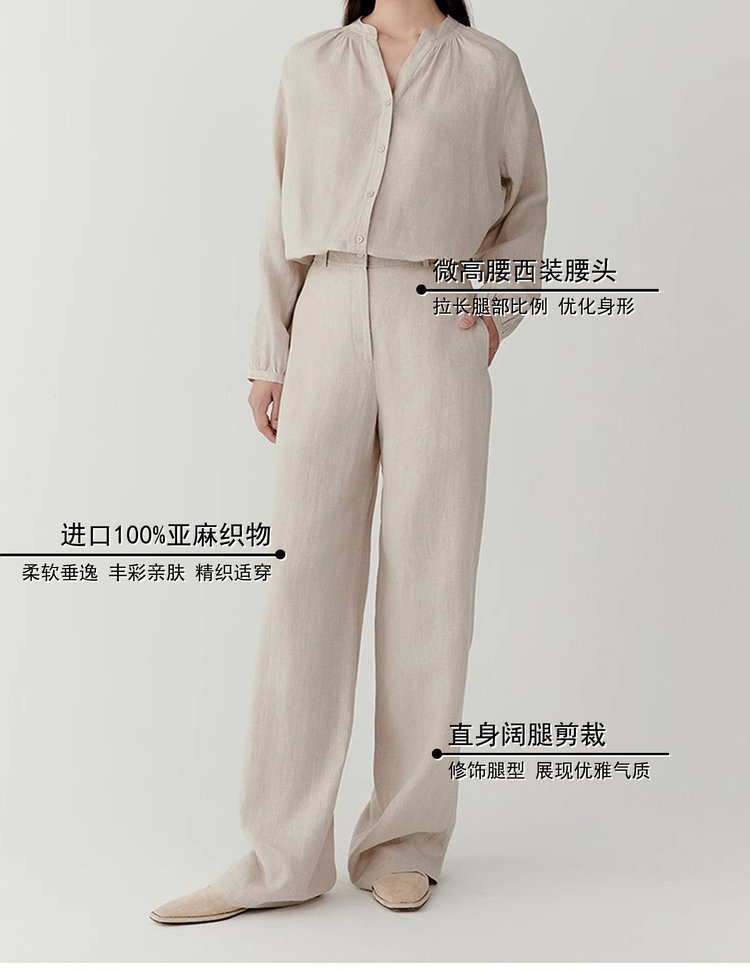 直身亚麻长裤采用高品质欧洲进口薄亚麻面料