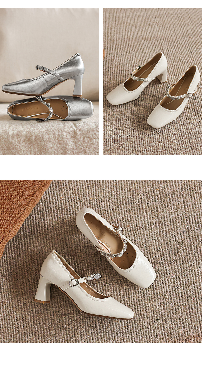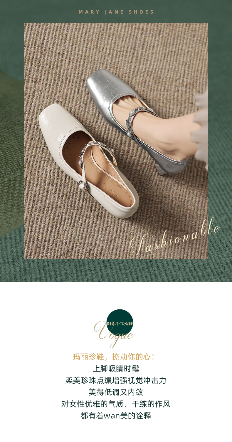 阿么手工女鞋一字带法式珍珠2026新款玛丽珍鞋粗跟超软单鞋6.5CM