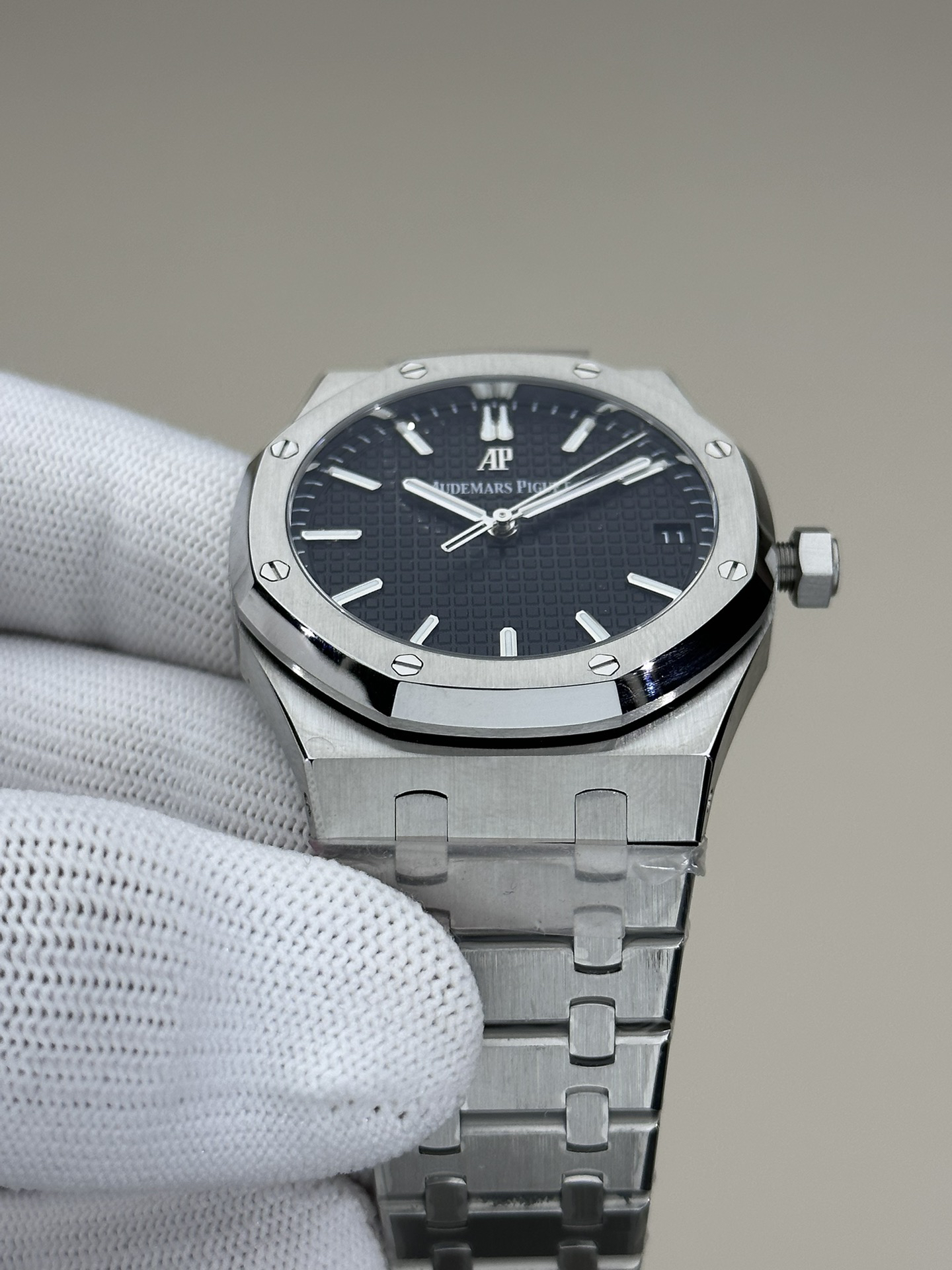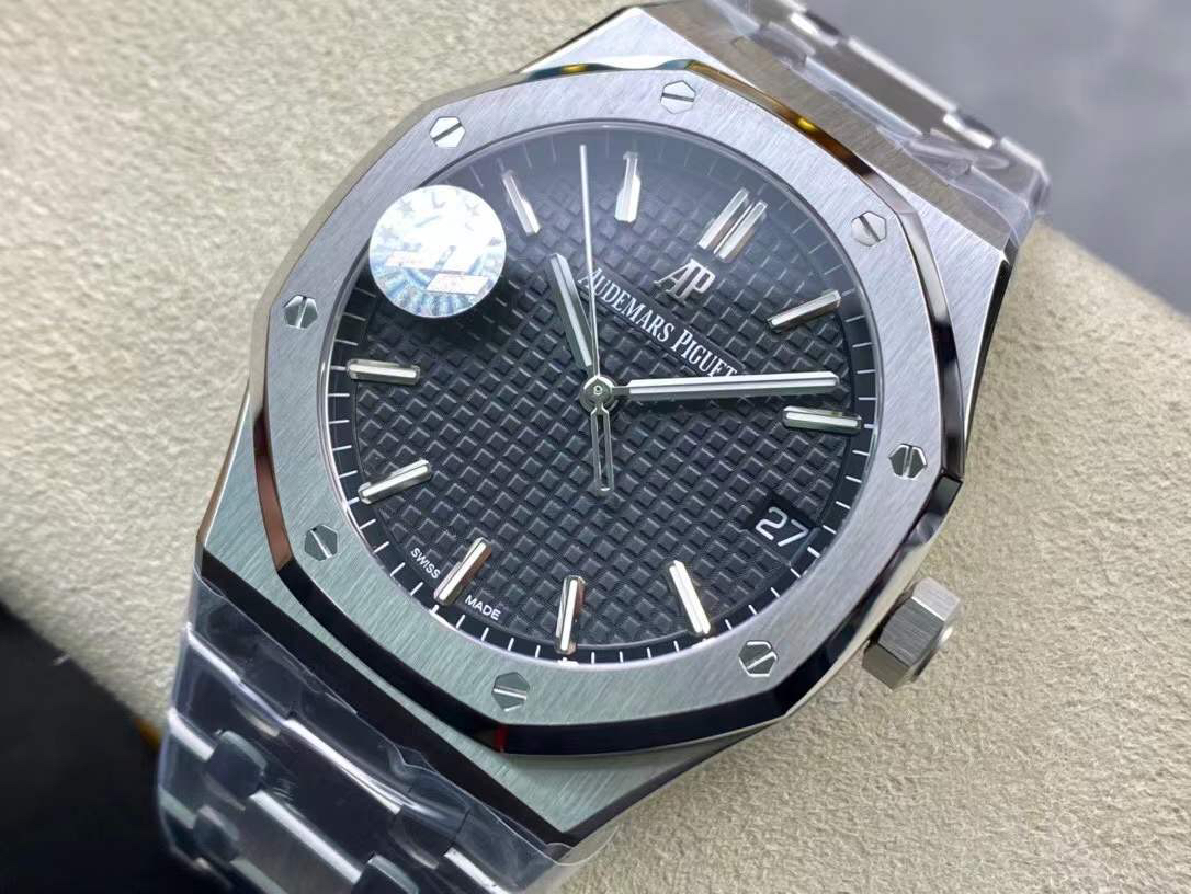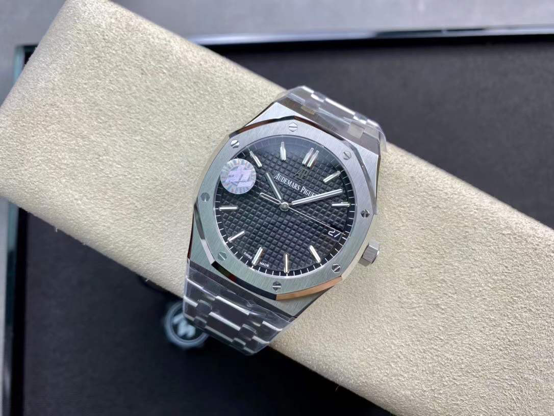 ZF爱bi皇家橡树15500系列 采用9015机芯改爱彼CAL.4302一体机!尺寸为41X10.4毫米与正品一致!男士腕表,精钢表带,自动机械机芯,透底。