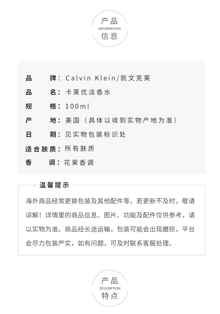 CK(Calvin Klein)ck one BE 香水 男香女士香中性淡香水情侣香水100ml【CDF】