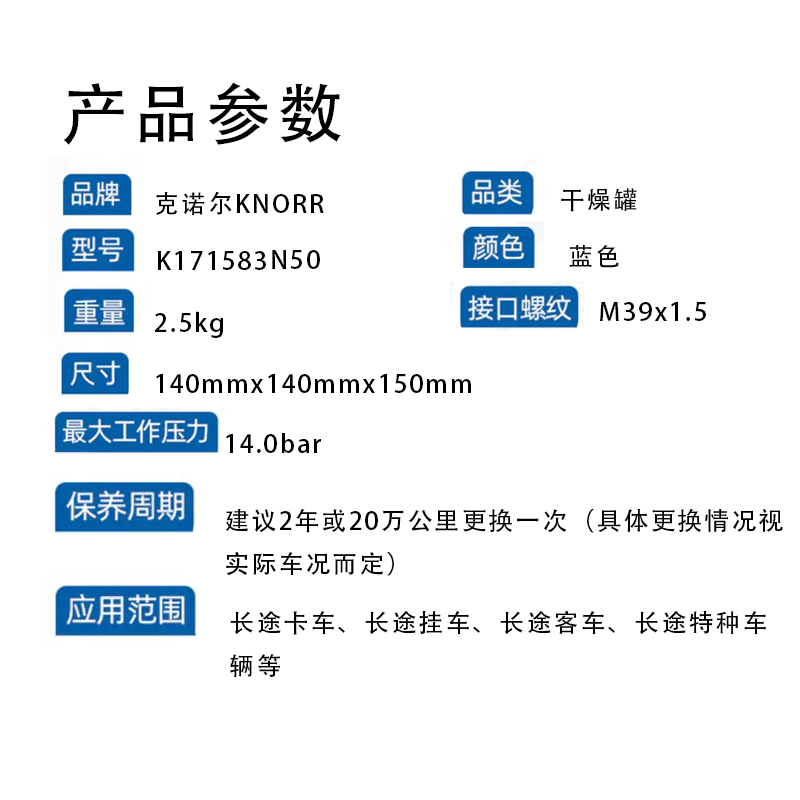 卡车蓝罐干燥罐干燥桶滤油滤水克诺尔KNORRK171583N50(包邮)