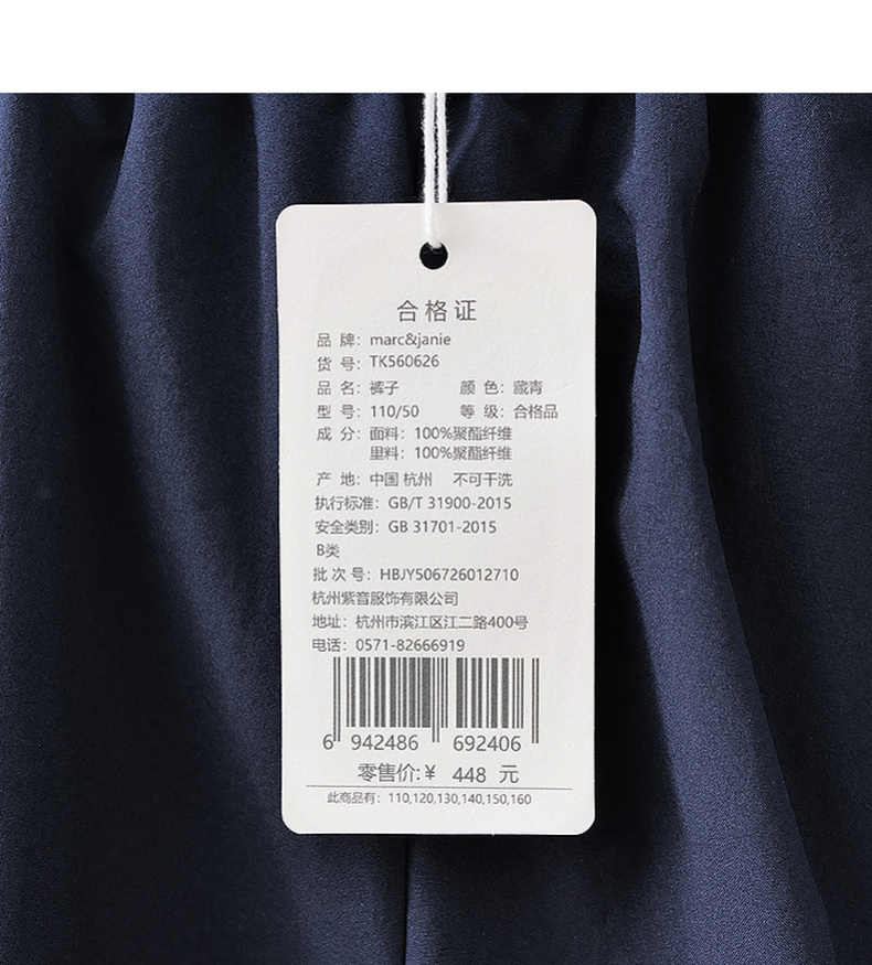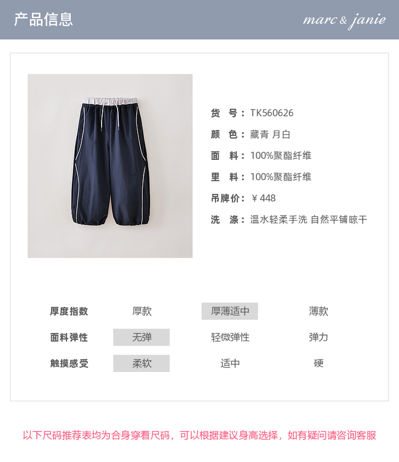 马克珍妮休闲极简女童速干直筒裤2026年夏装新款560626