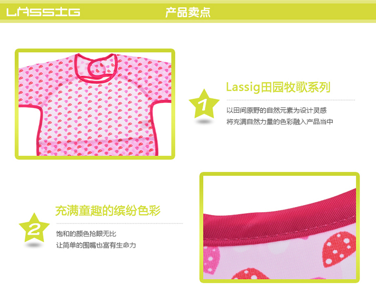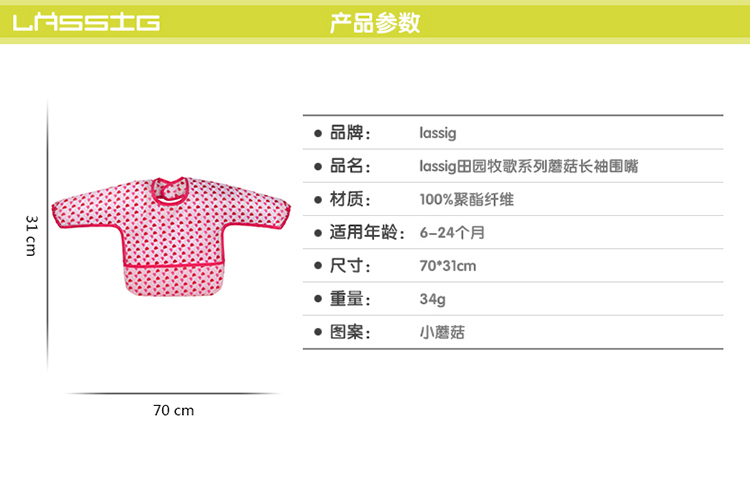 LASSIG长袖围嘴——粉蘑菇LASCLTEXBLS028