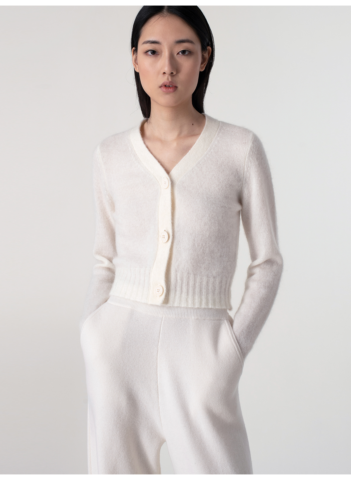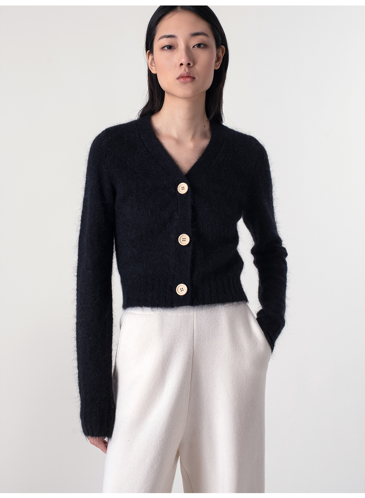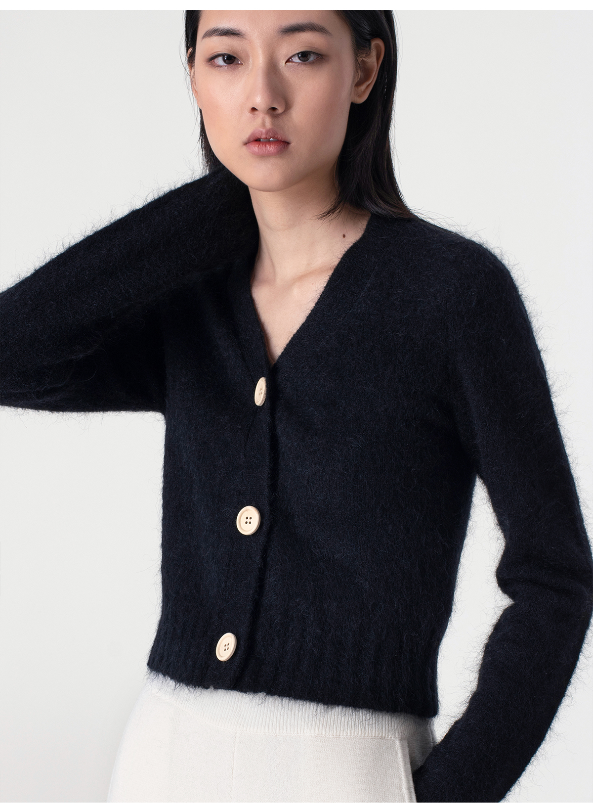322工房马海毛针织衫女2023新款早秋季长袖短款V领纯色绒感毛衣外