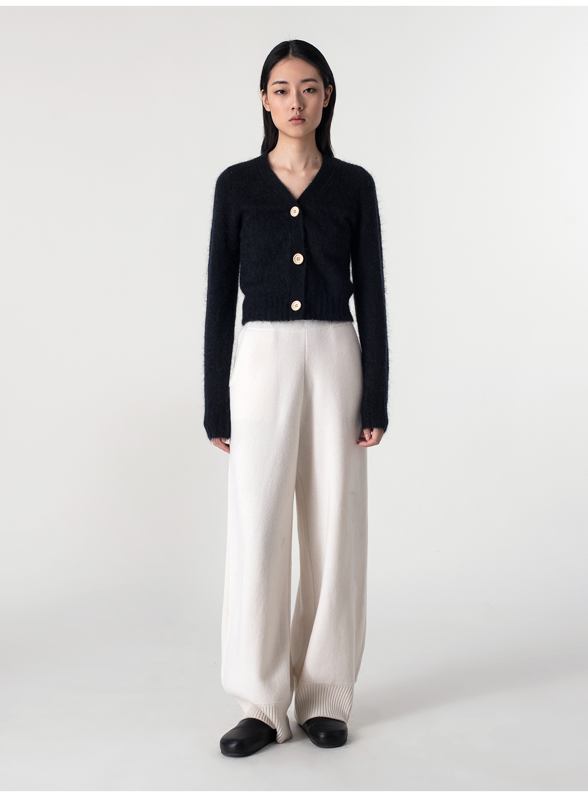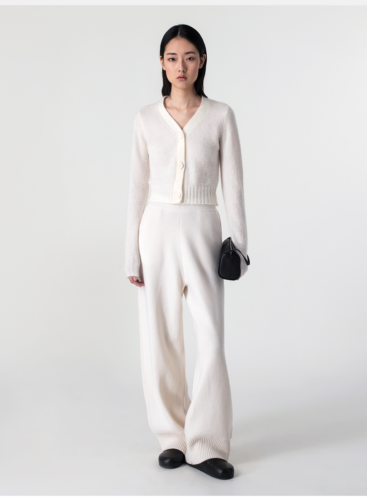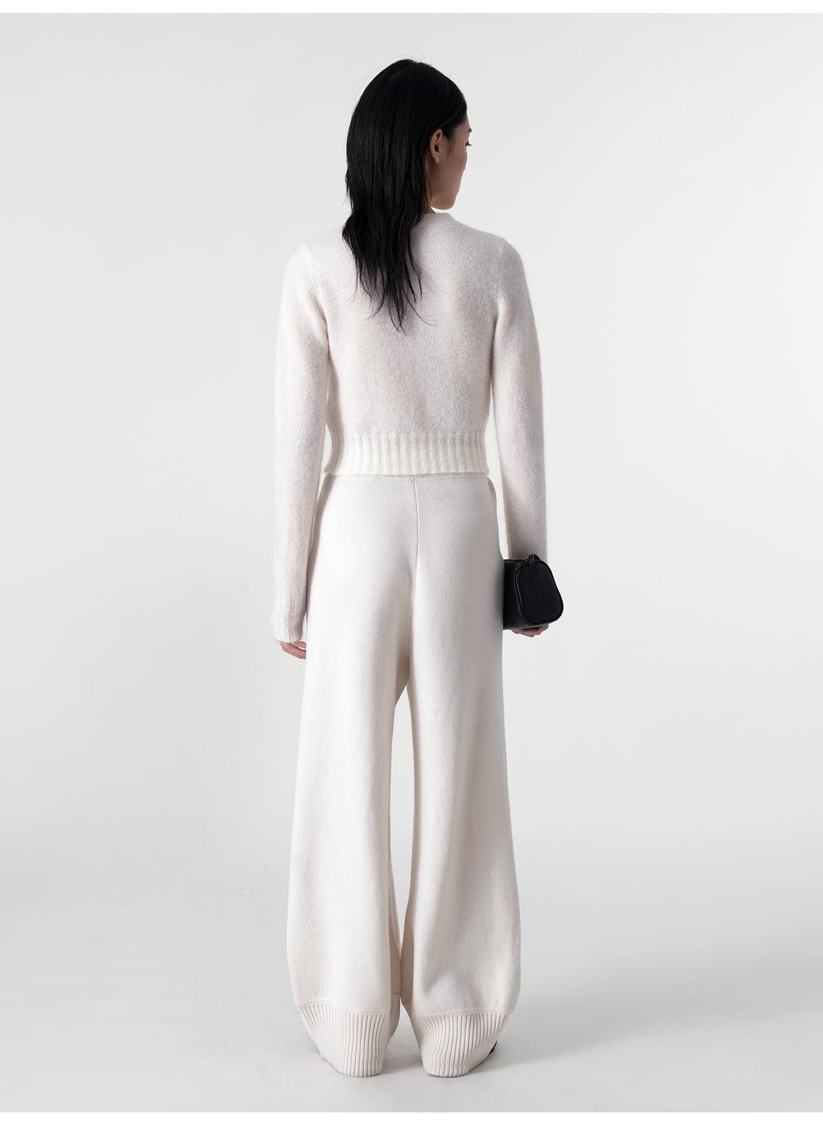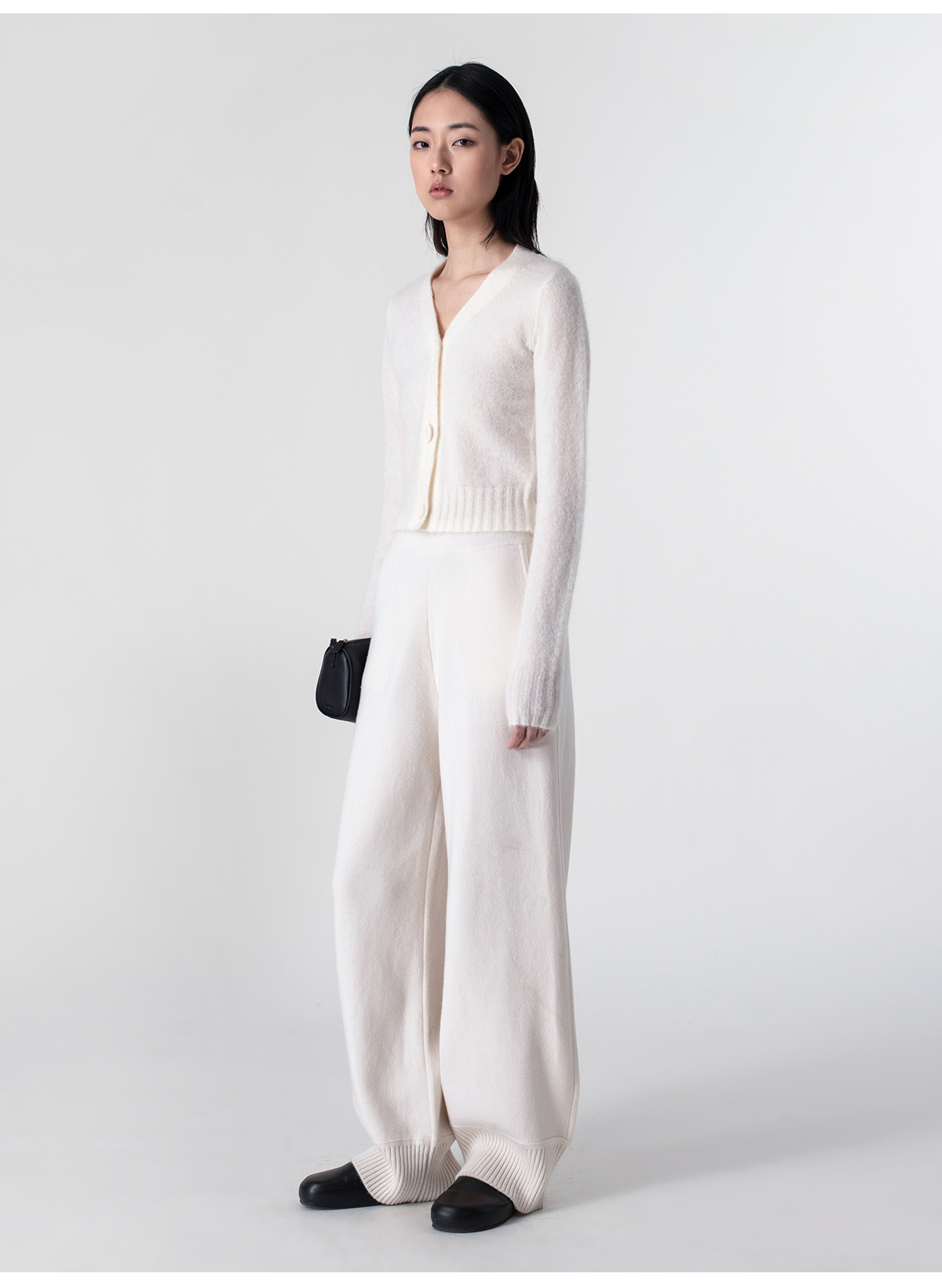 322工房马海毛针织衫女2023新款早秋季长袖短款V领纯色绒感毛衣外