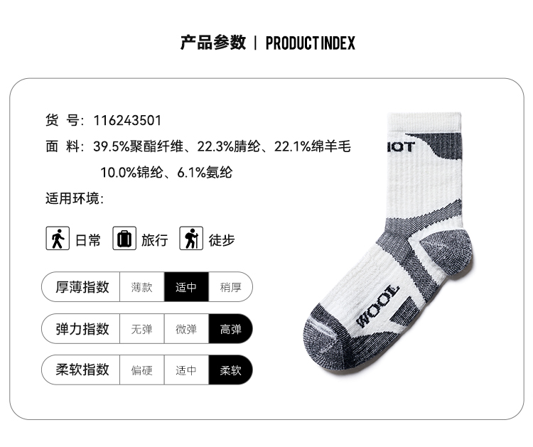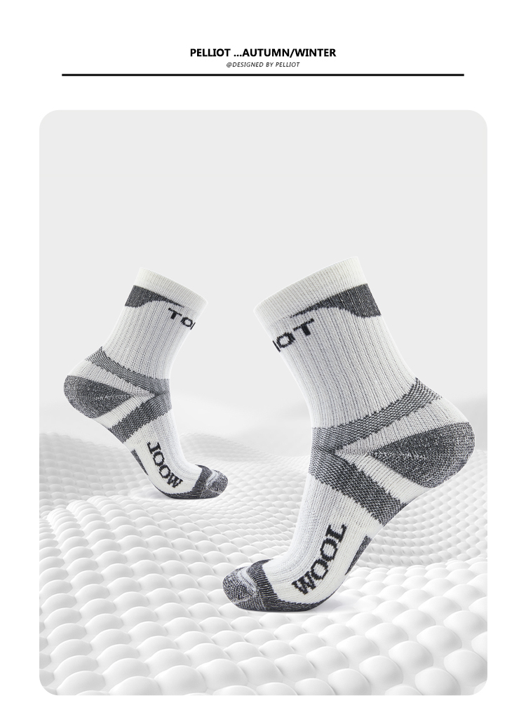 伯希和运动袜男女中筒袜吸汗透气快干徒步登山羊毛袜子跑步篮球袜