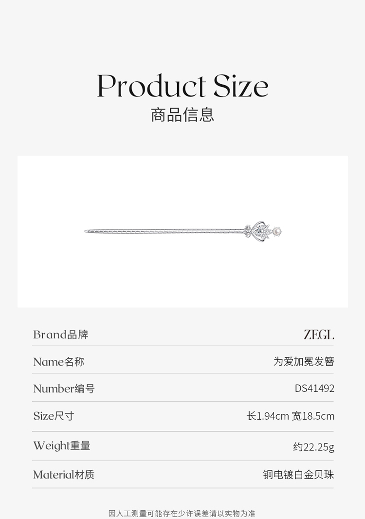 ZEGL设计师为爱加冕系列皇冠发簪女高级感简约现代钗子结婚发饰品