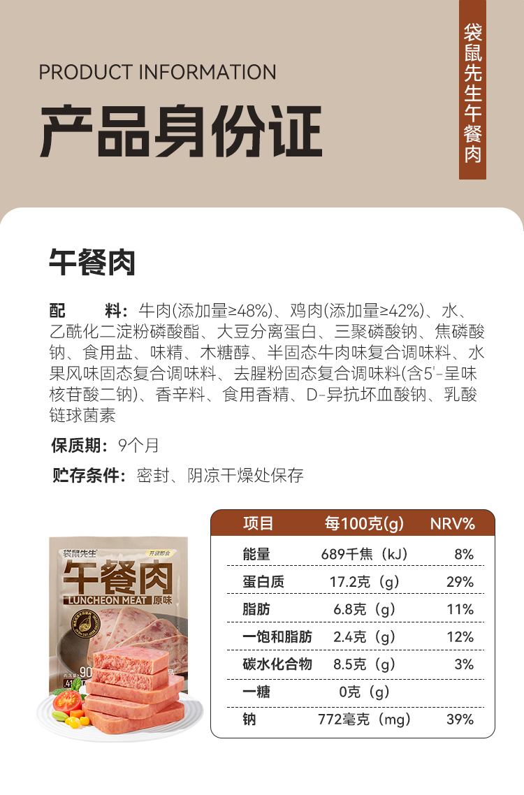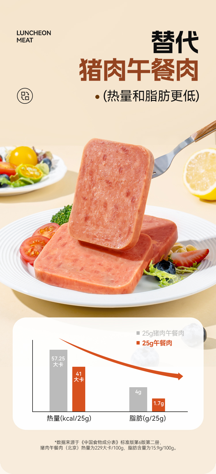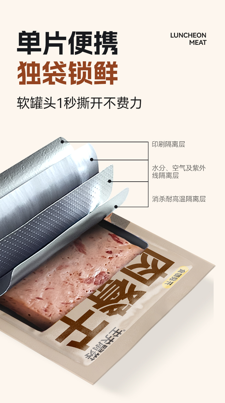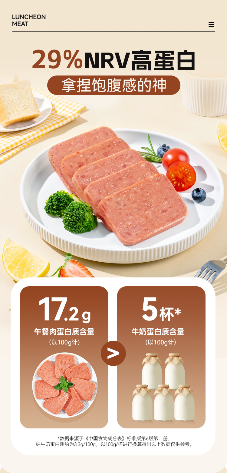 【满减专区】午餐肉25g原味 肉含量高达90% 高蛋白劲弹口感