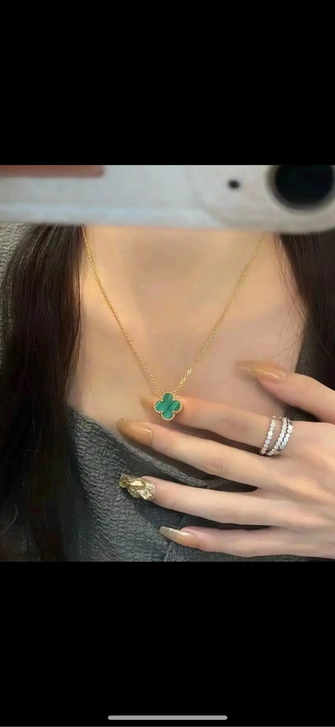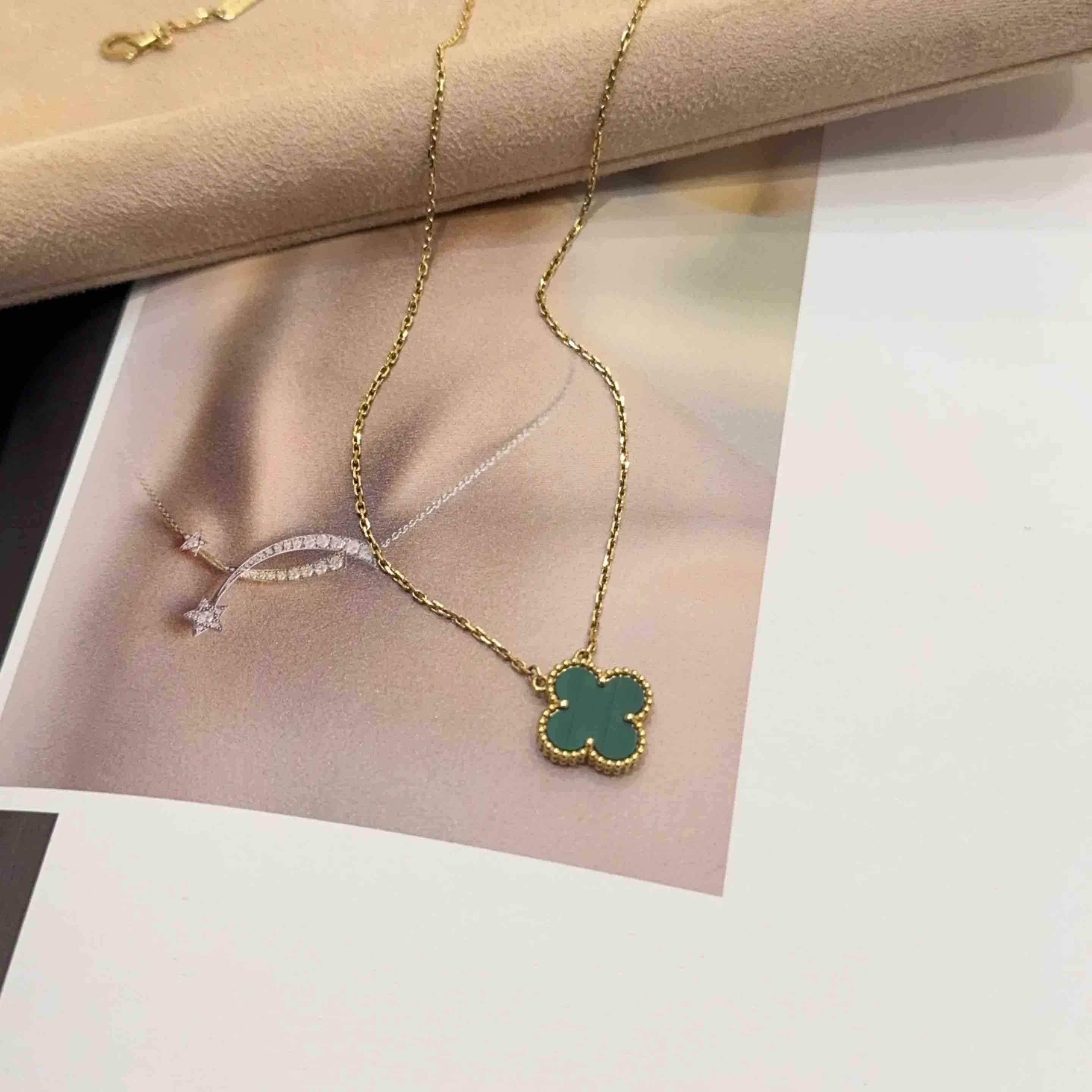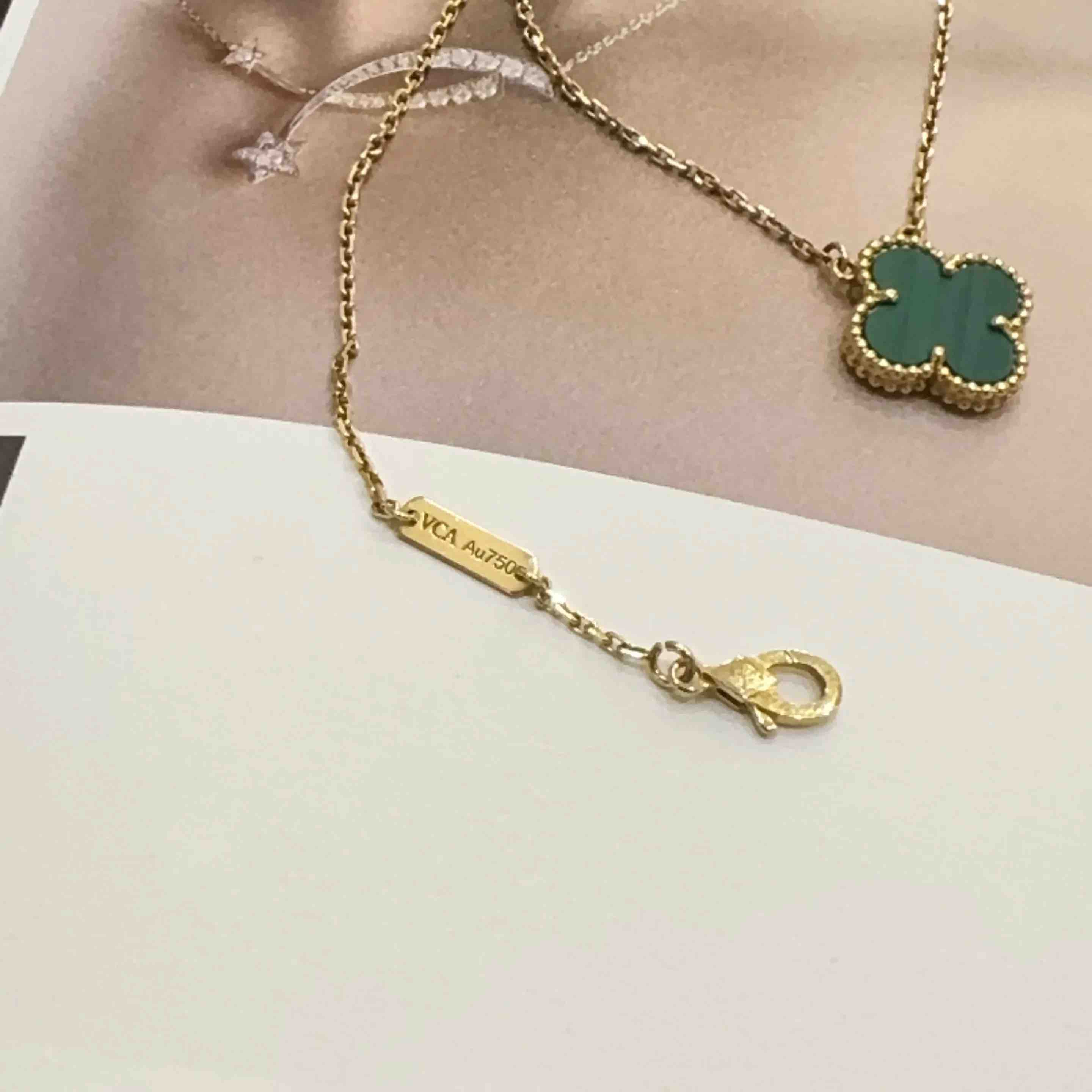 【商品详情】正品二手 梵克雅宝 孔雀石 四叶草 项链🤯95新 43cm。五金正常使用感。百搭不挑人。