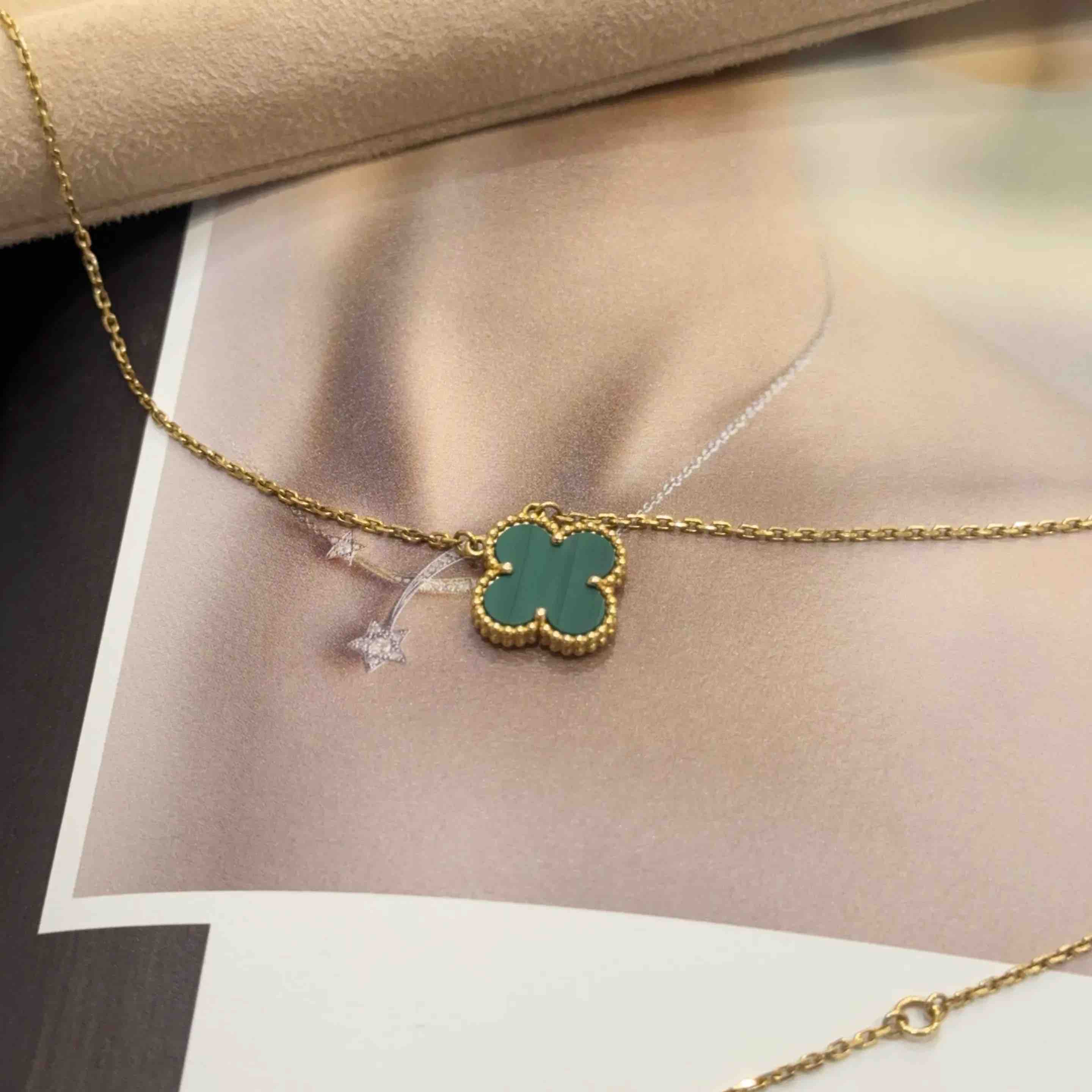 梵克雅宝 孔雀石 四叶草 项链