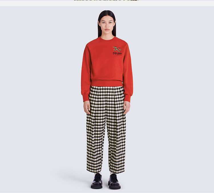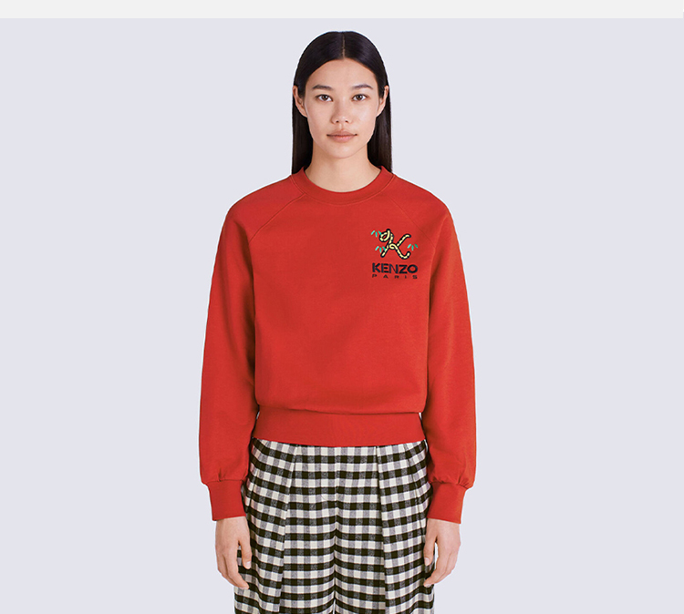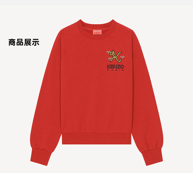 KENZO 高田贤三 女士棉质 TIGER TAIL K 徽标刺绣圆领长袖卫衣 红色 FC62 SW658 4MF 21