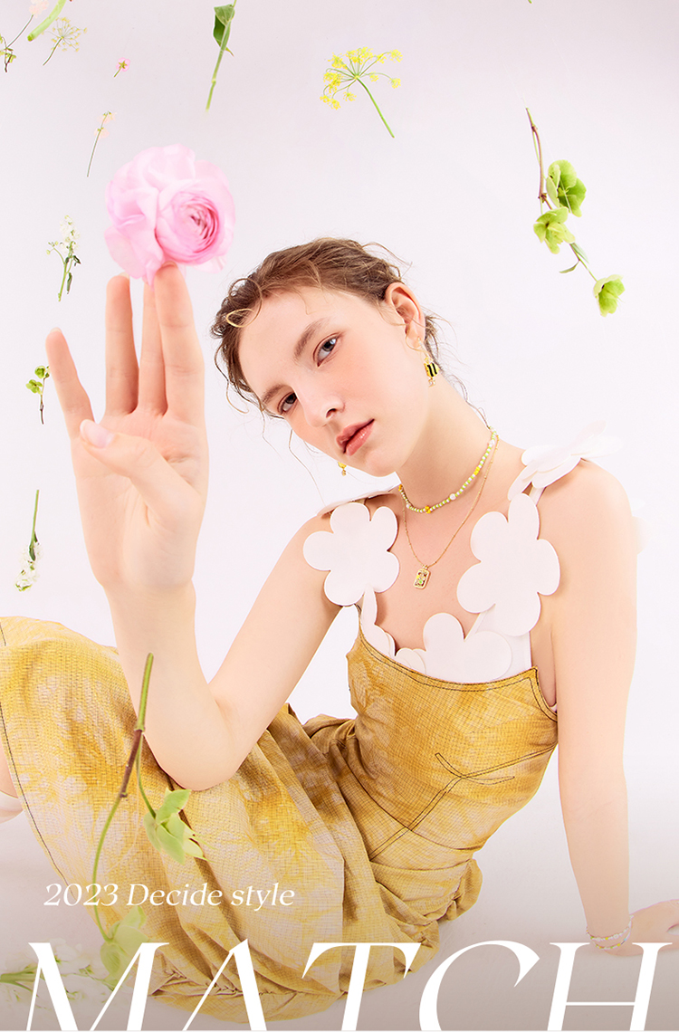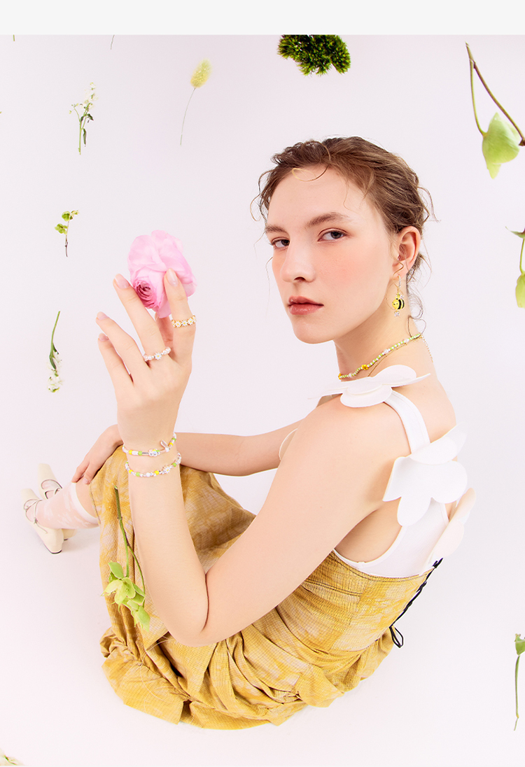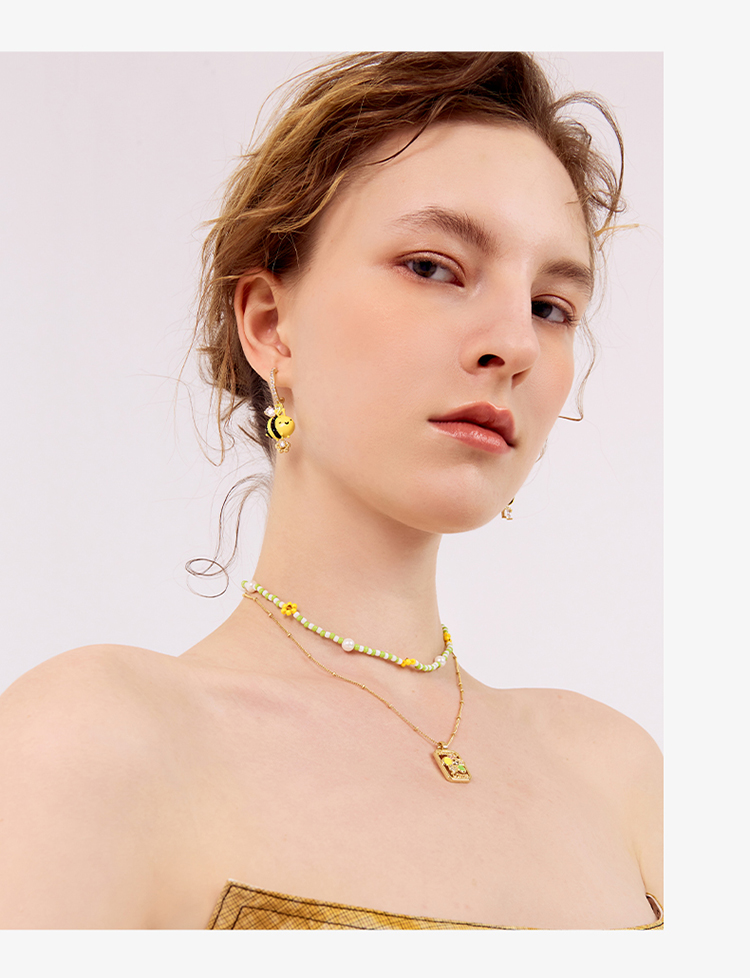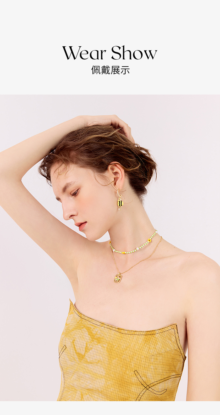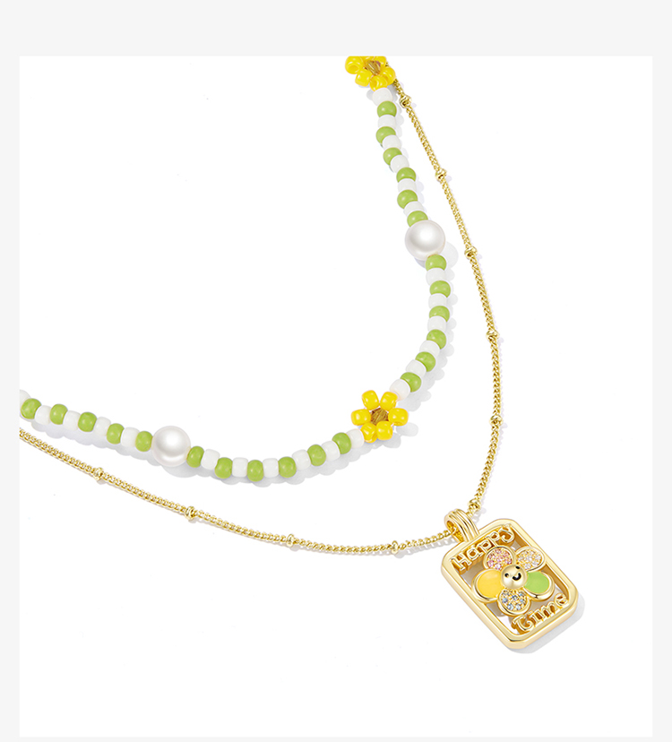 ZEGL设计师轻松春日系列小黄花串珠项链女双层叠戴人造珍珠锁骨链