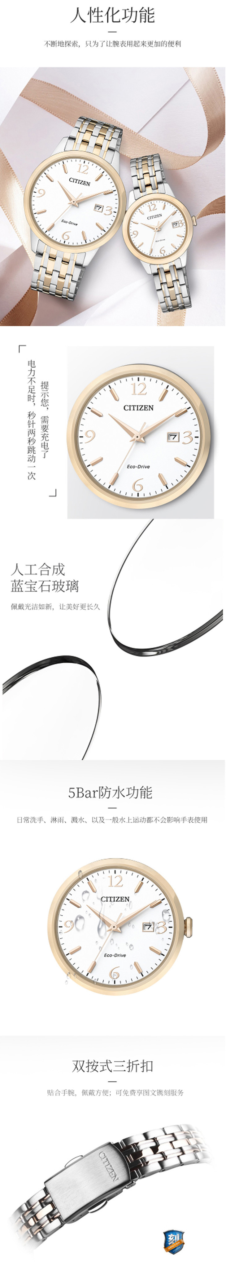 西铁城(CITIZEN)光动能不锈钢间金情侣表(女款)EW2234-55A