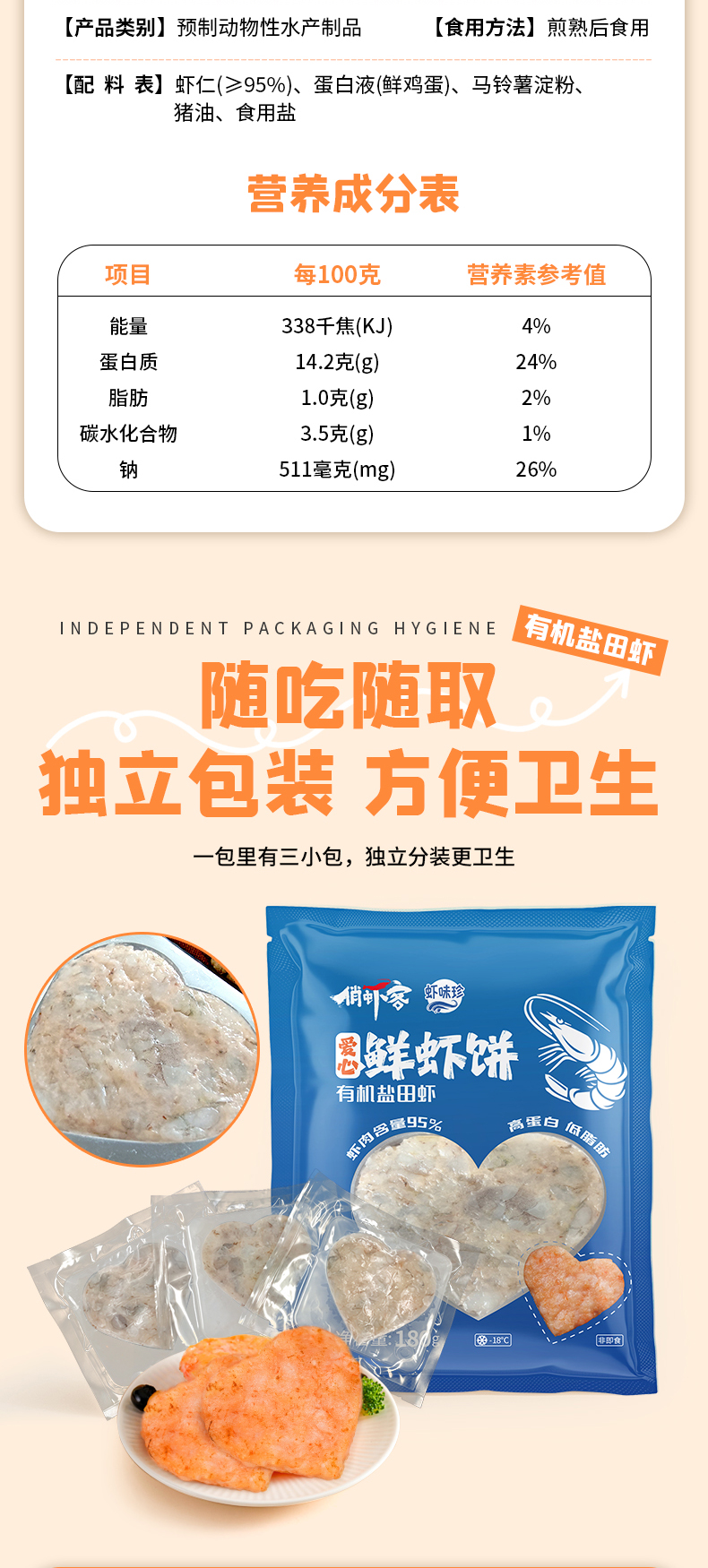 俏虾客有机虾饼 180g(净重)/袋*3