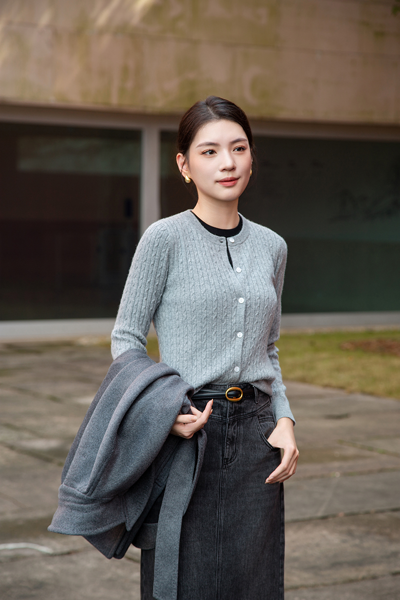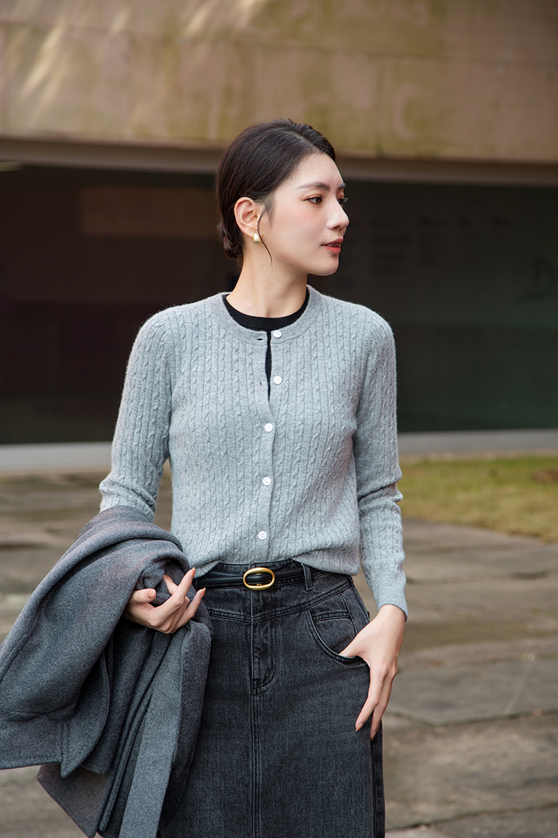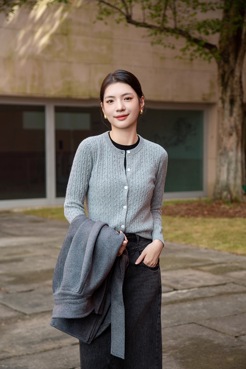 【半价款绞花羊绒开衫】羊绒世家秋冬新品女士100%山羊绒针织开衫外套