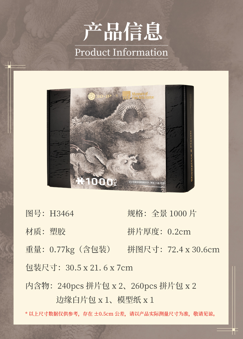 1000片 平面塑料拼图 H3464 全景长版拼图-波士顿美术博物馆系列-陈容-九龙(局部)