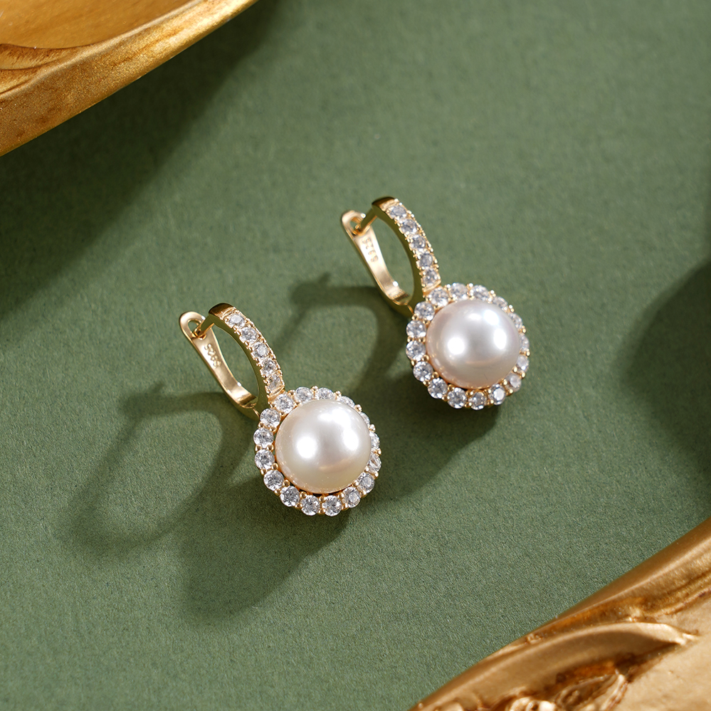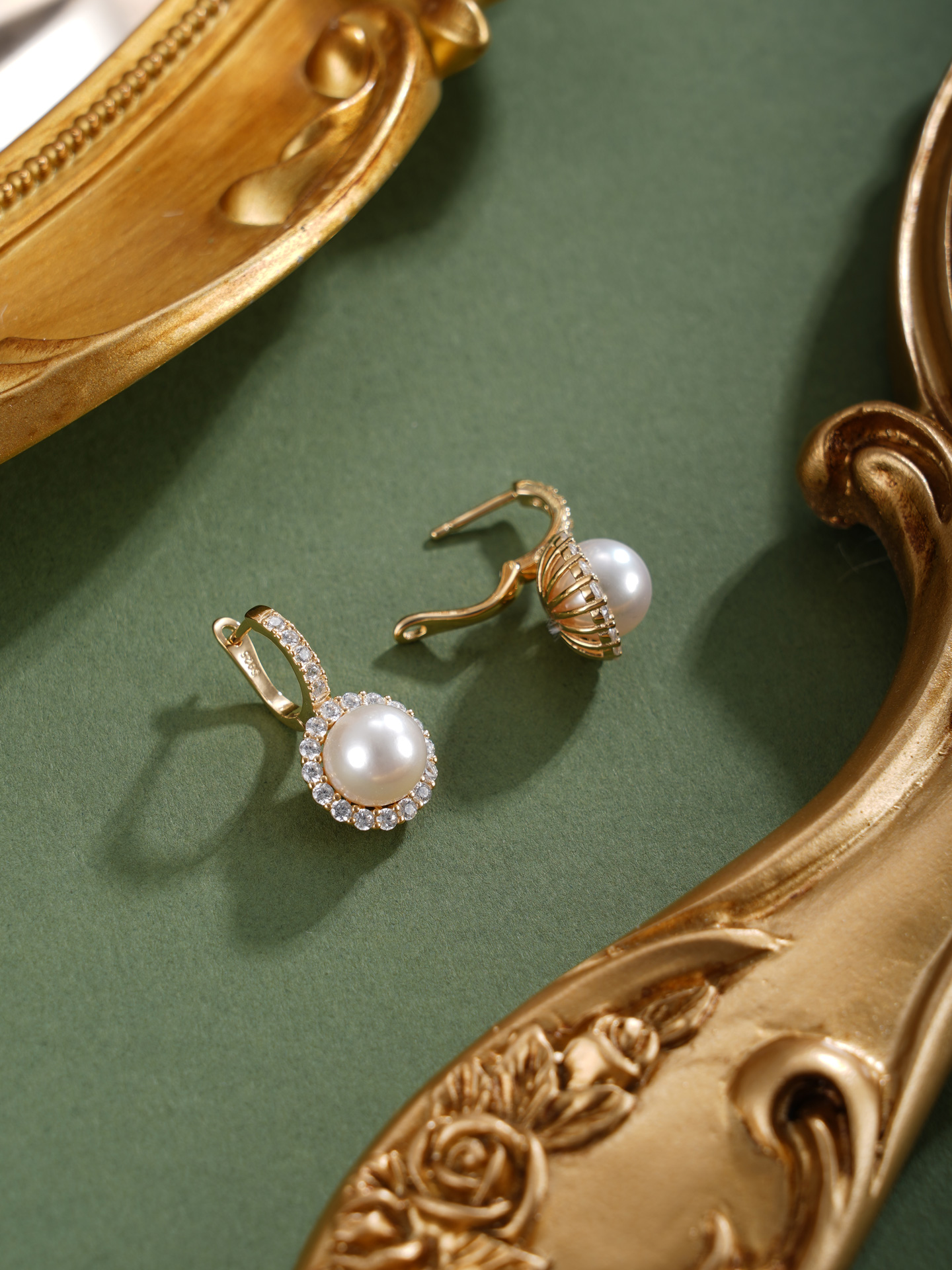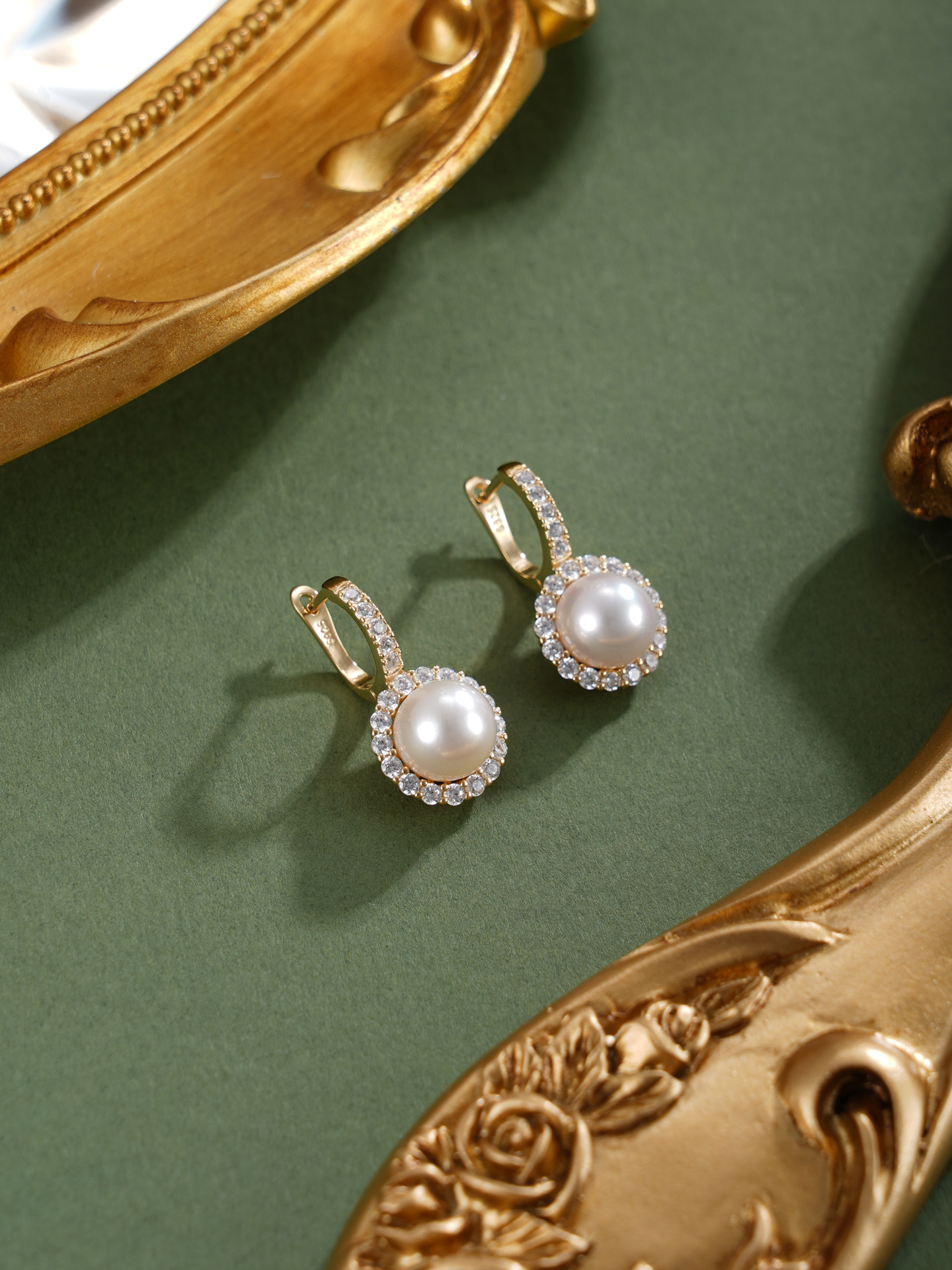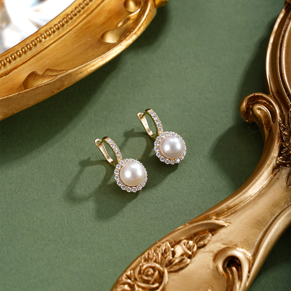 子佩集【花影随行】S925珍珠惜王妃耳环【YE1076】8mm珠太阳花圆圈扣环2601