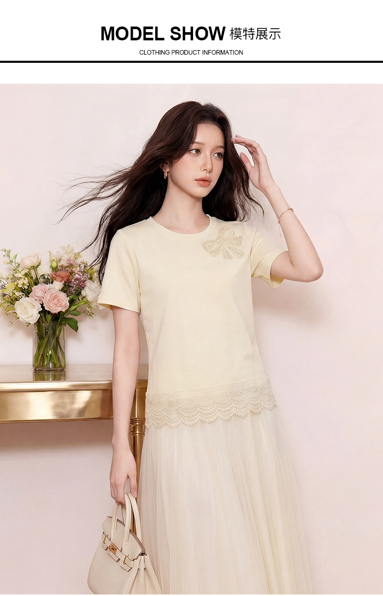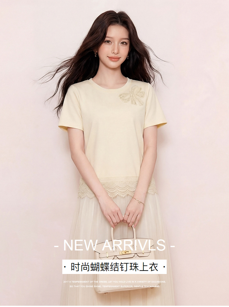 奢姿大码女装2026夏季减龄蝴蝶结钉珠上衣胖妹妹花边圆领时尚T恤9962194585