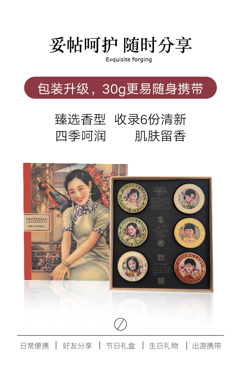 摩登红人可可脂雪花膏四季护手霜六盒装礼盒老上海节日伴手礼