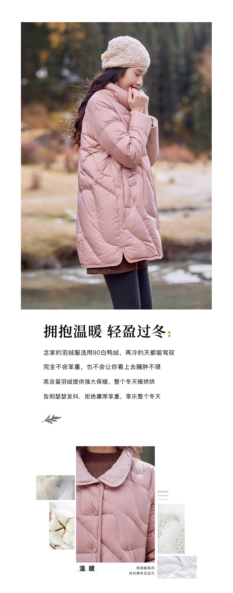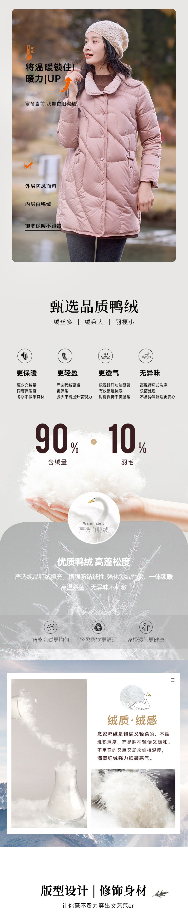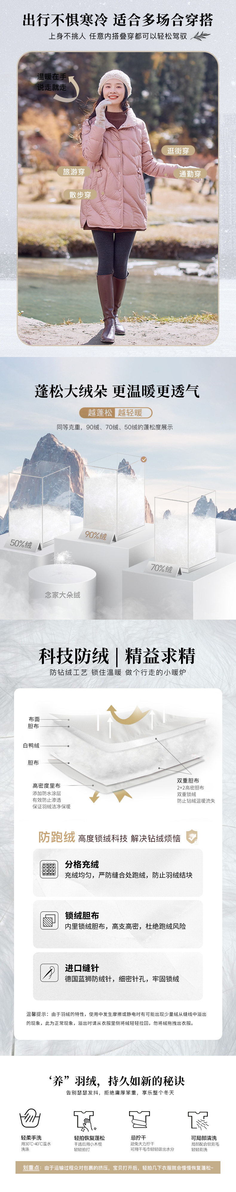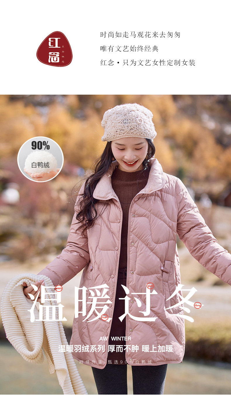 红念粉色羽绒服女中长款设计感冬季2025年新款白鸭绒冬装外套上衣