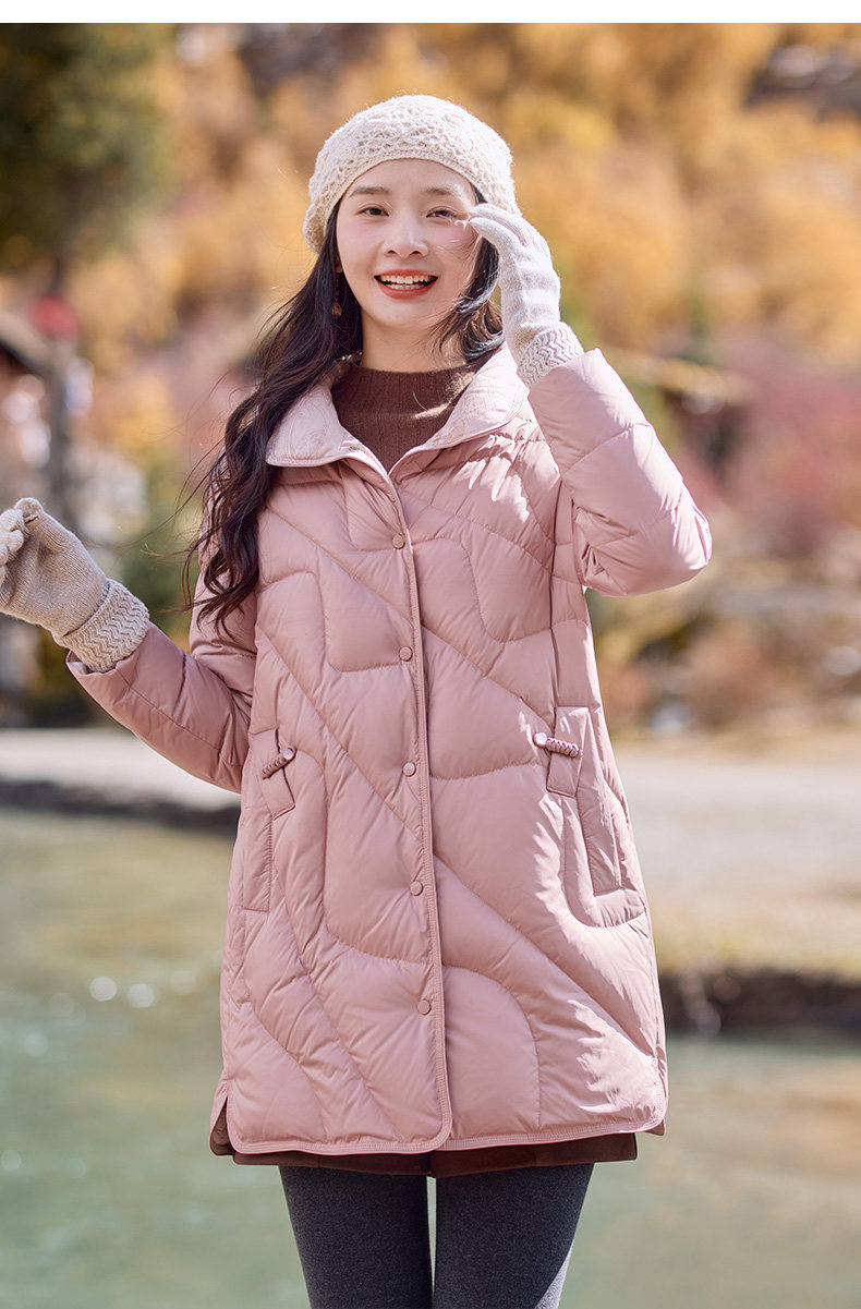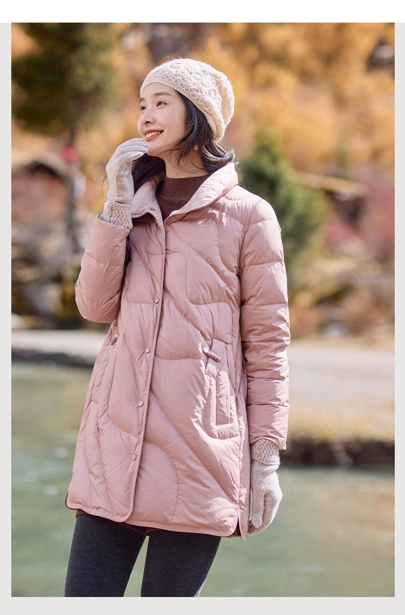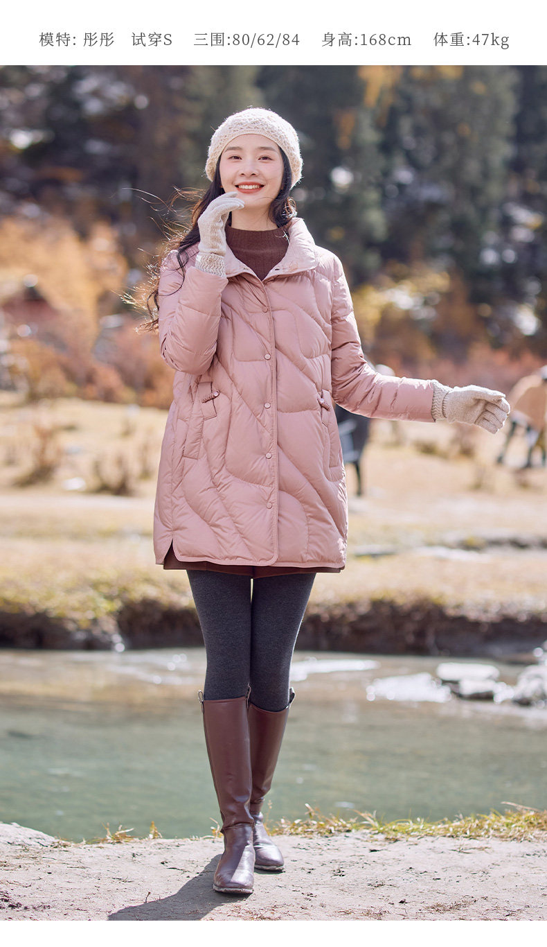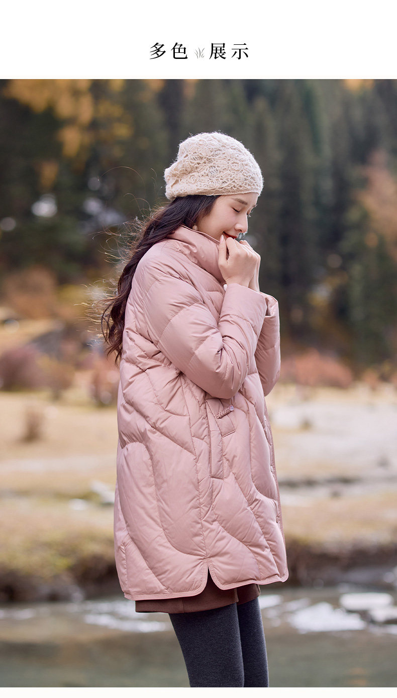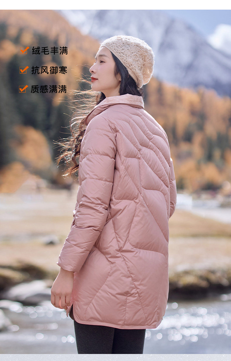 红念粉色羽绒服女中长款设计感冬季2025年新款白鸭绒冬装外套上衣