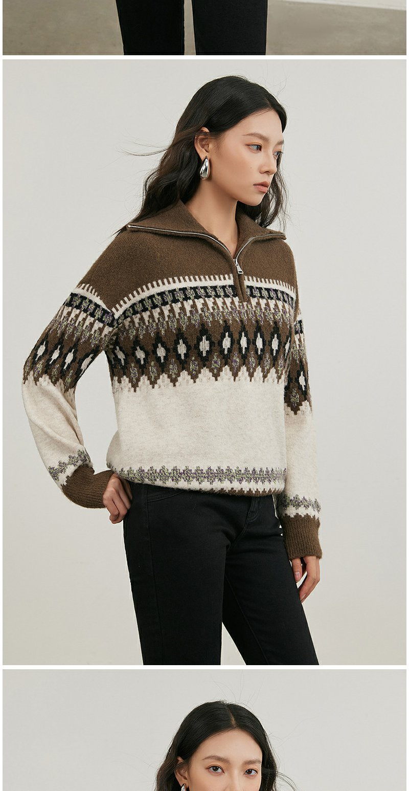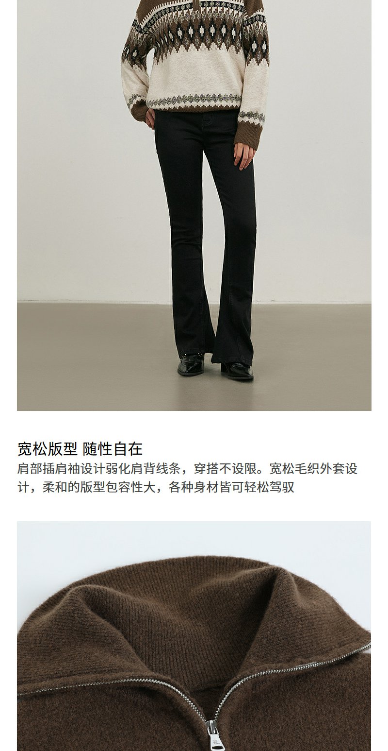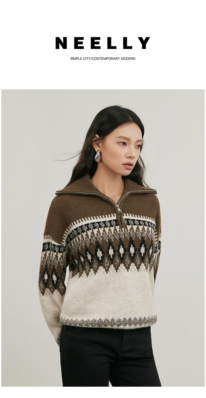 NEELLY纳俪商场同款冬季新款polo领条纹针织衫女软糯百搭短款毛衣N25114A04569