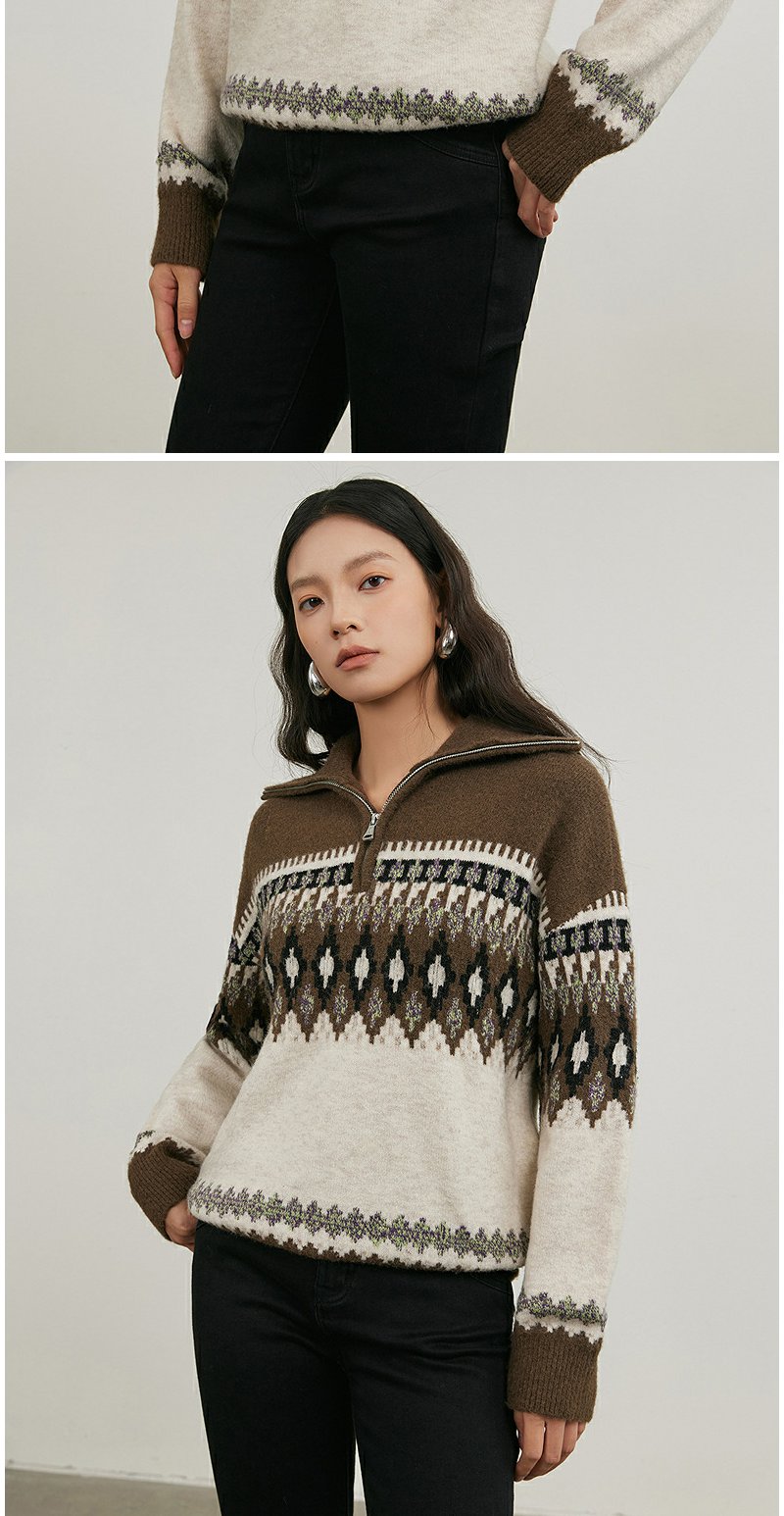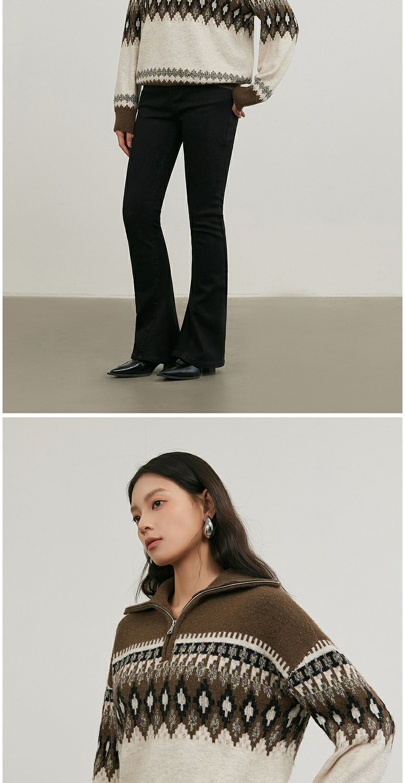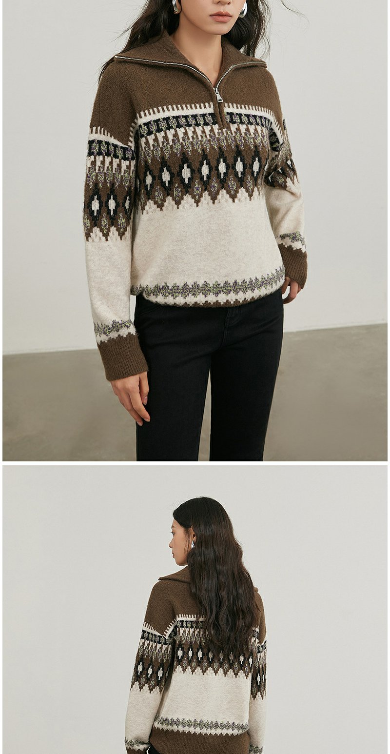 NEELLY纳俪商场同款冬季新款polo领条纹针织衫女软糯百搭短款毛衣N25114A04569