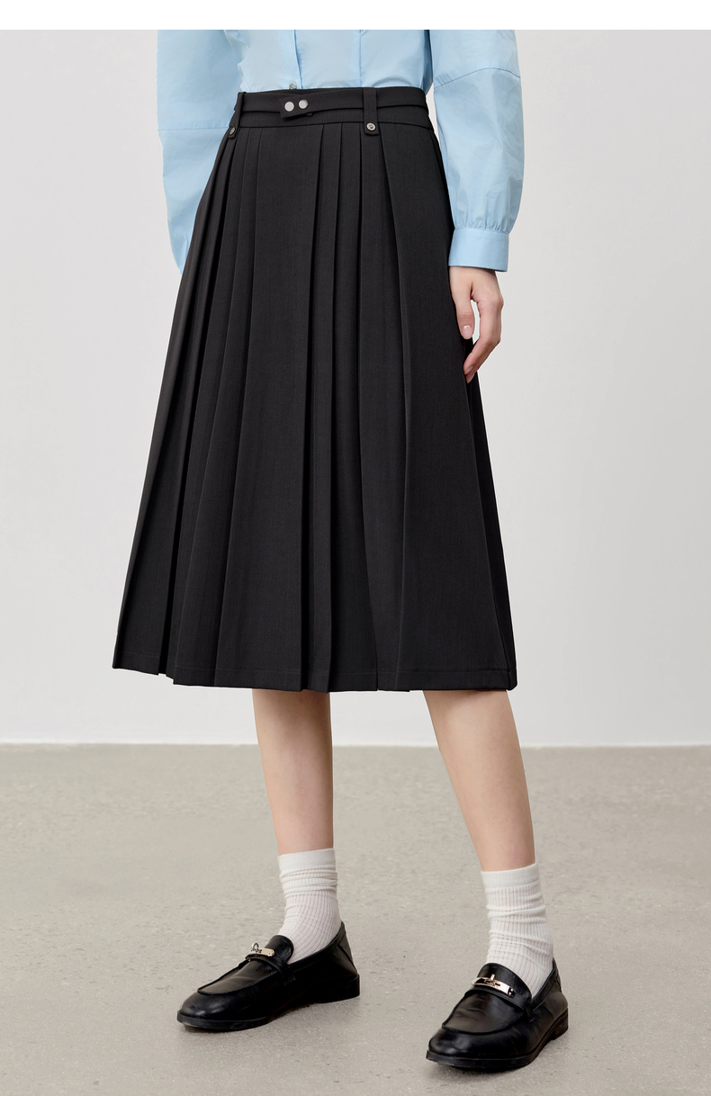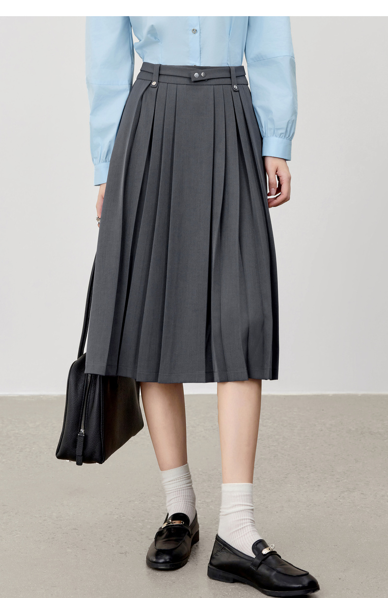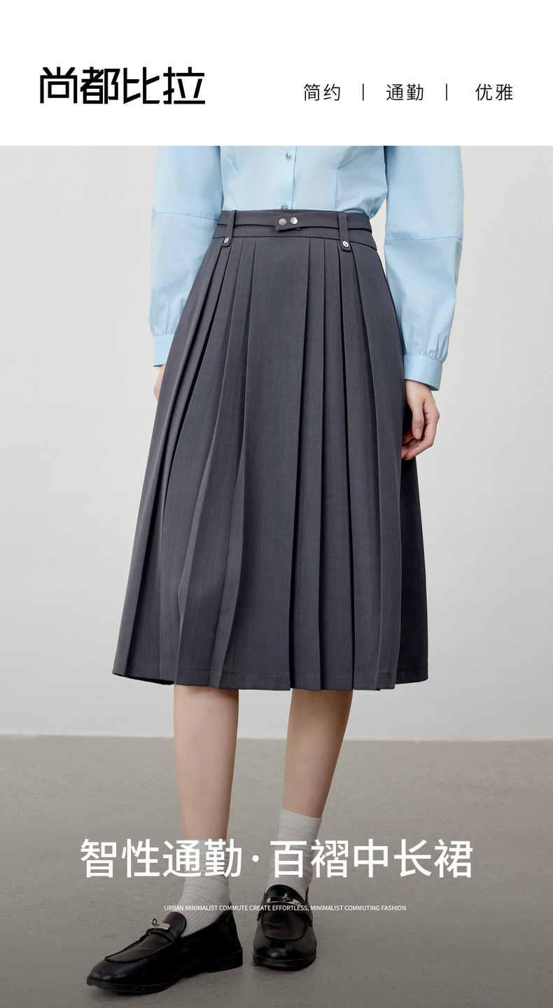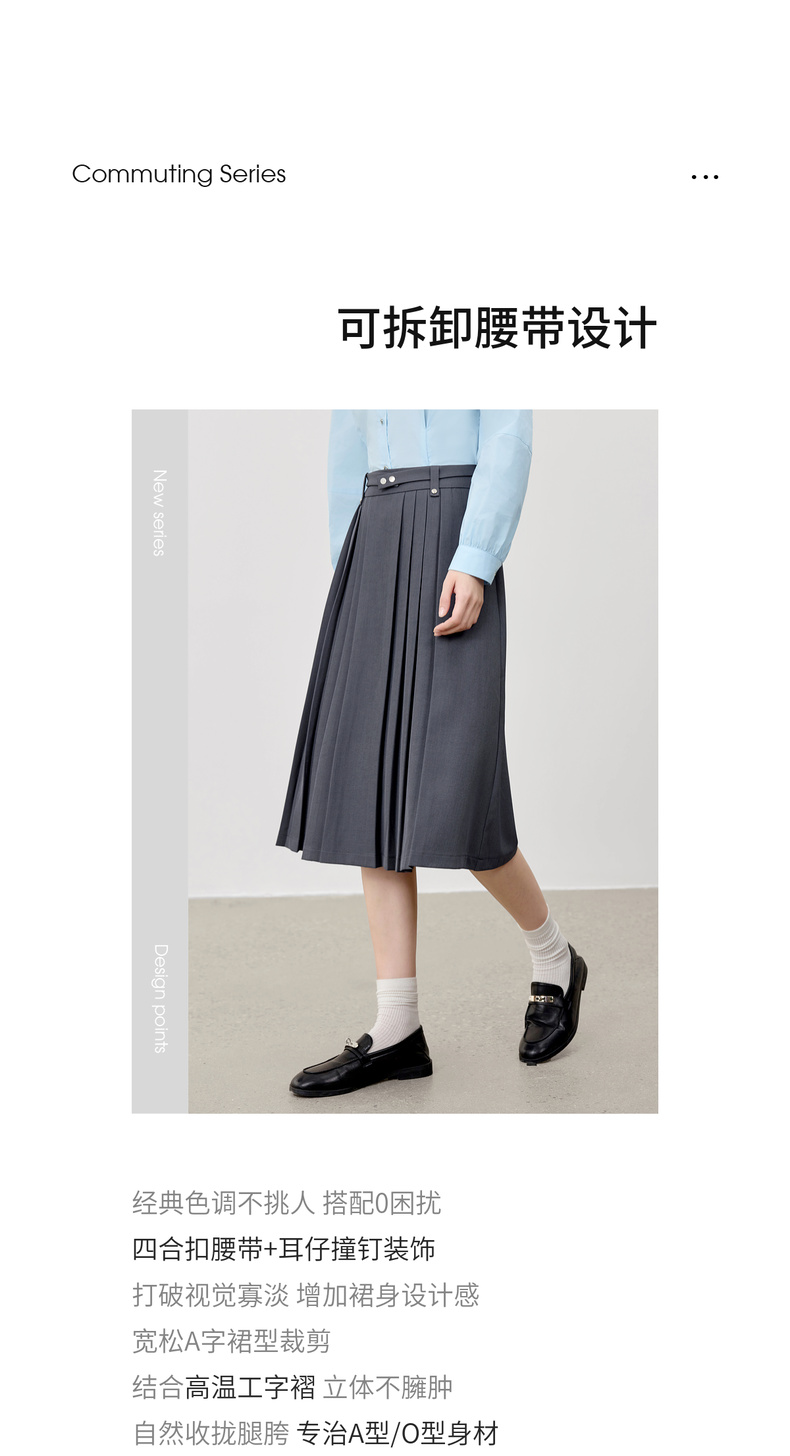 【内购】【遮胯显瘦】都市通勤可拆卸腰带立体压褶中长款A字百褶裙-153QB3088