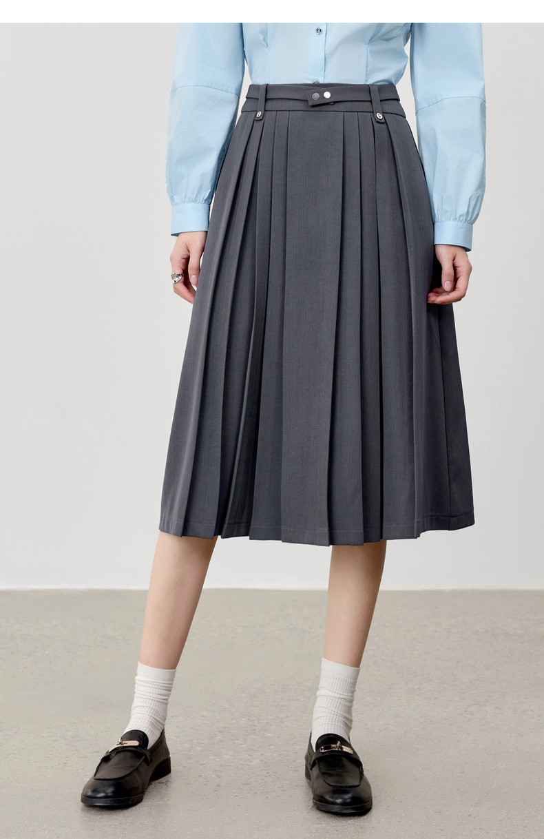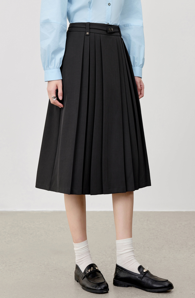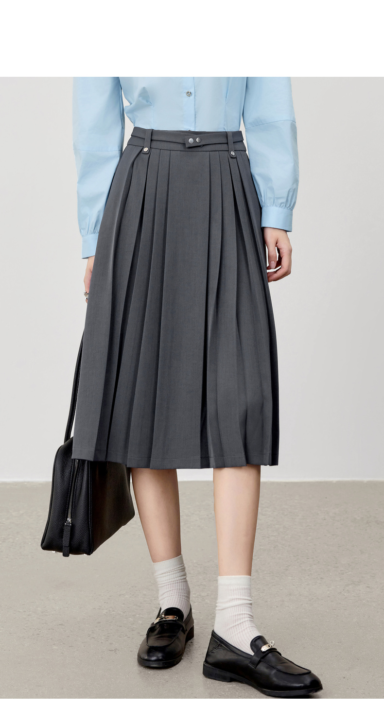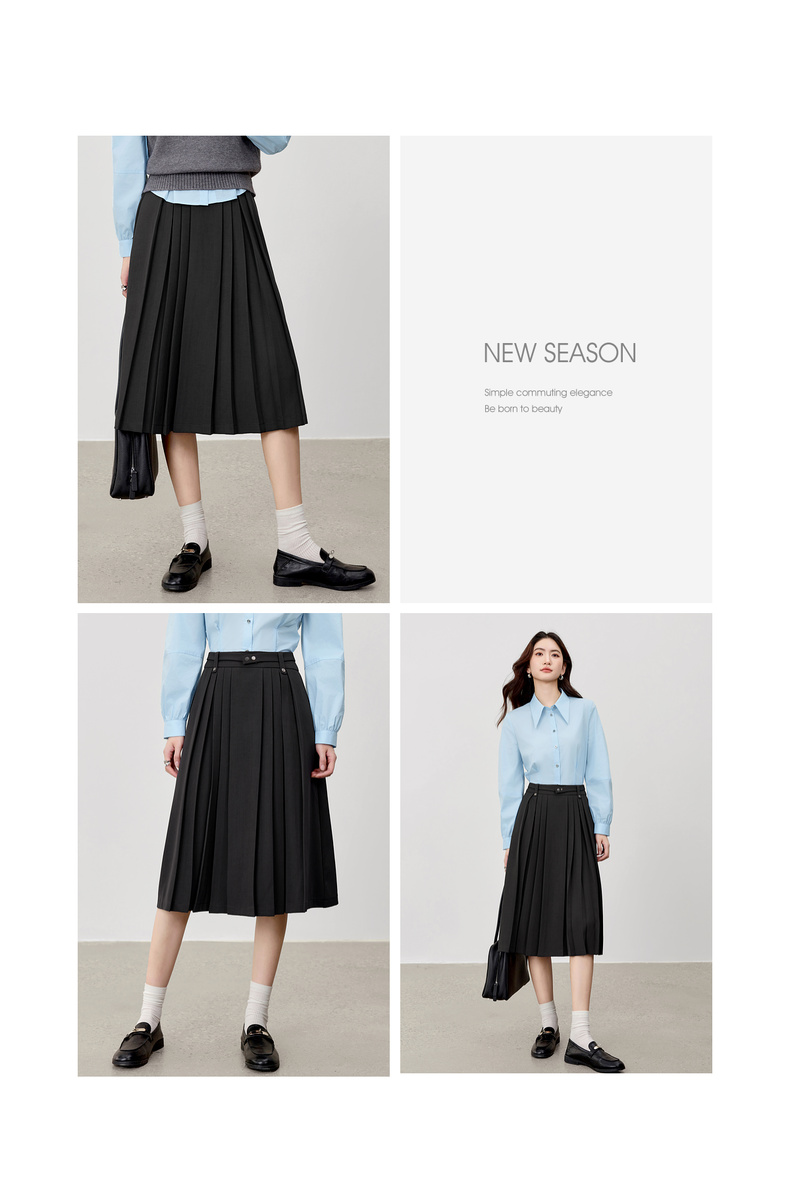 【内购】【遮胯显瘦】都市通勤可拆卸腰带立体压褶中长款A字百褶裙-153QB3088