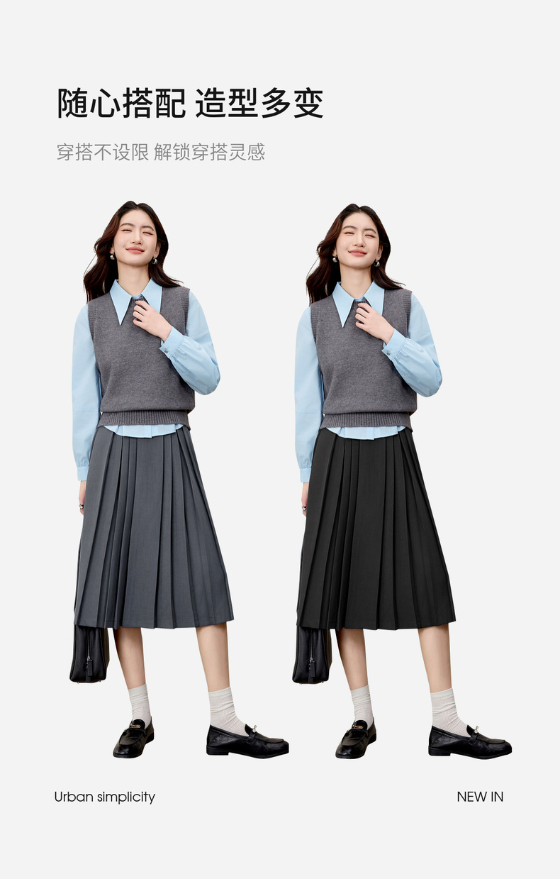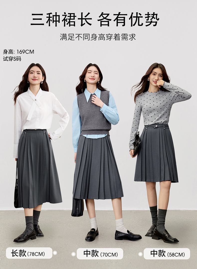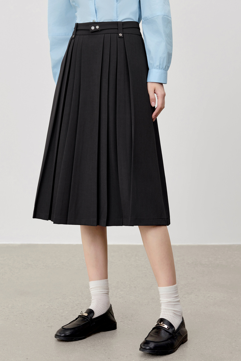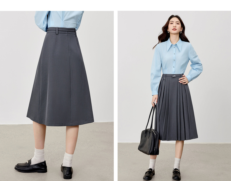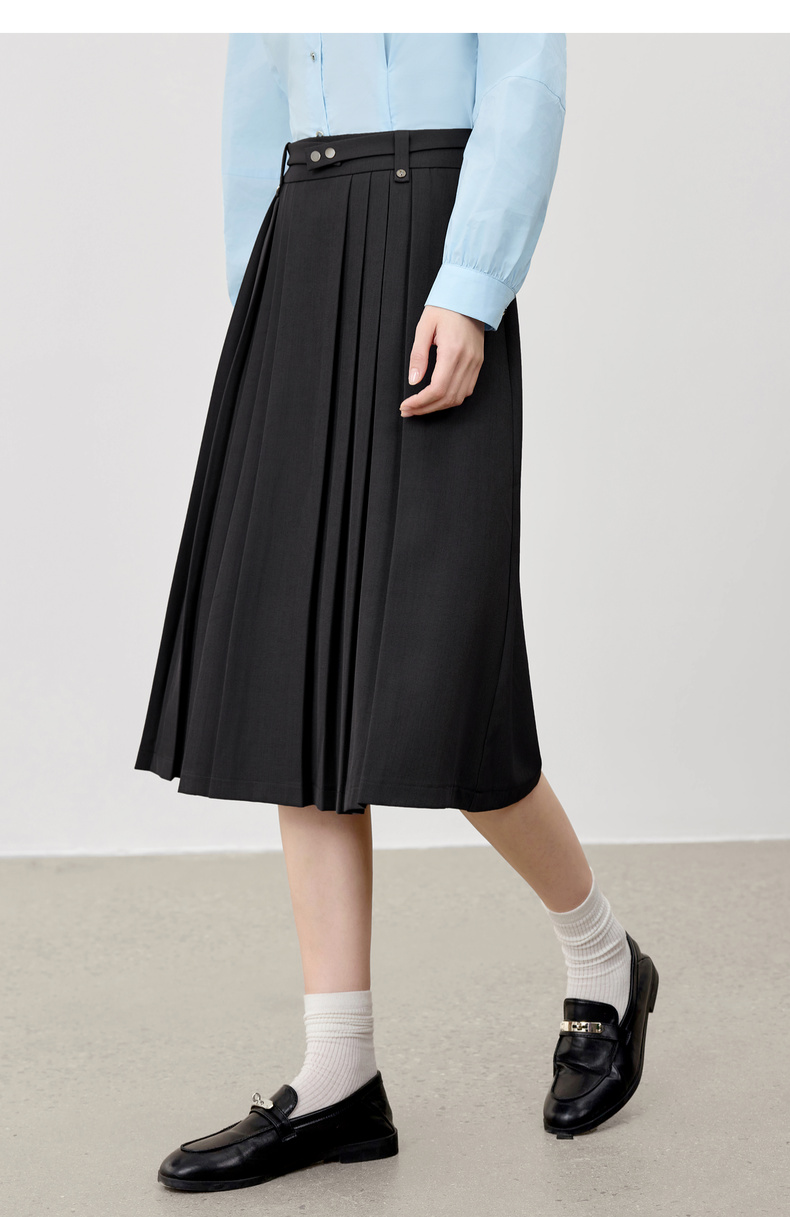 【内购】【遮胯显瘦】都市通勤可拆卸腰带立体压褶中长款A字百褶裙-153QB3088