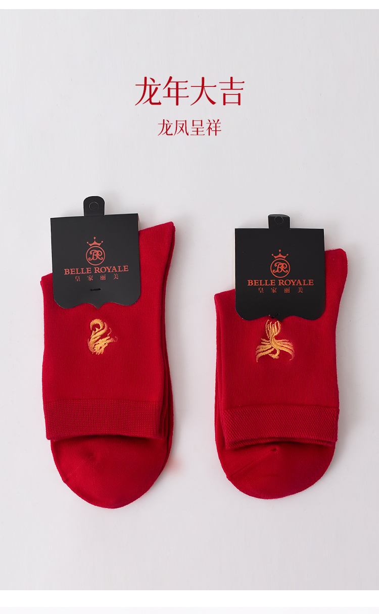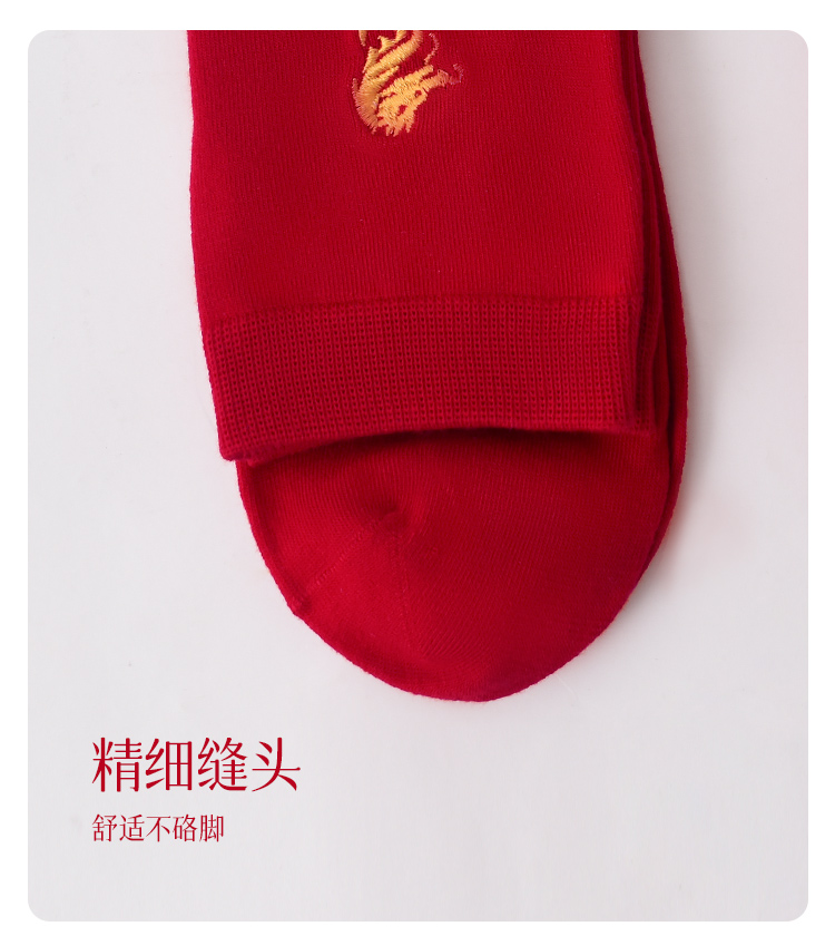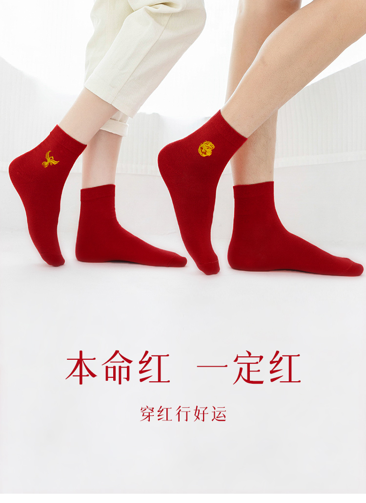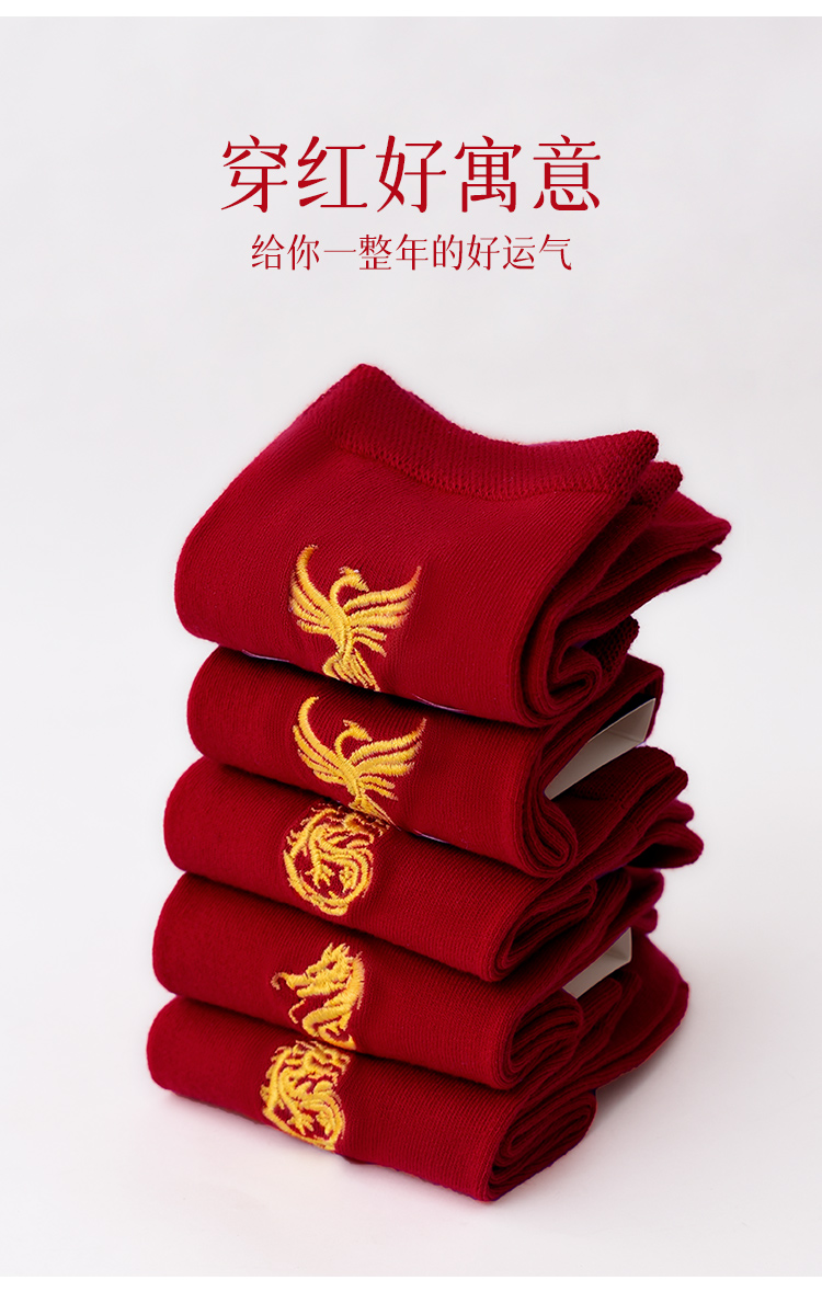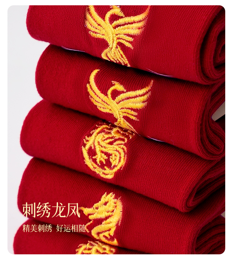 【42元5双,数量拍5】红袜子男女款中筒袜刺绣透气大红色新款新年结婚袜WZM3387/3456
