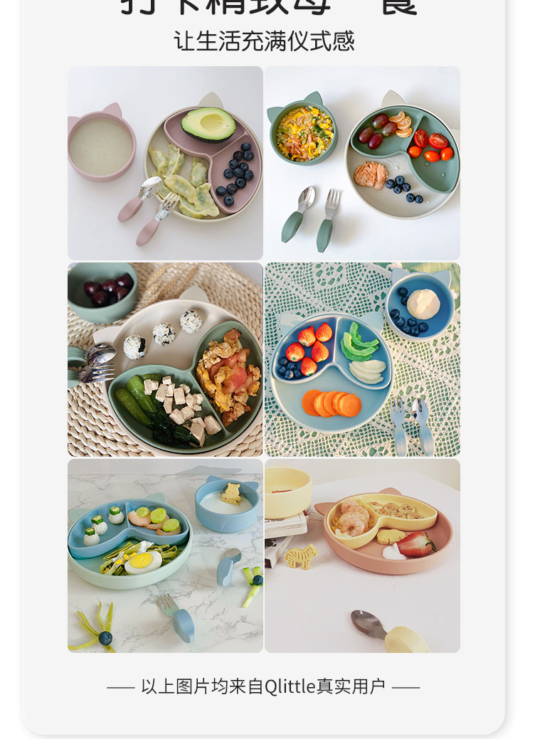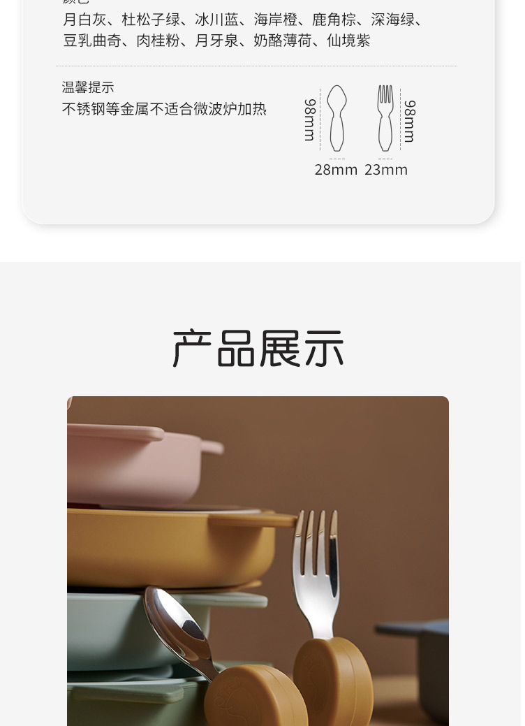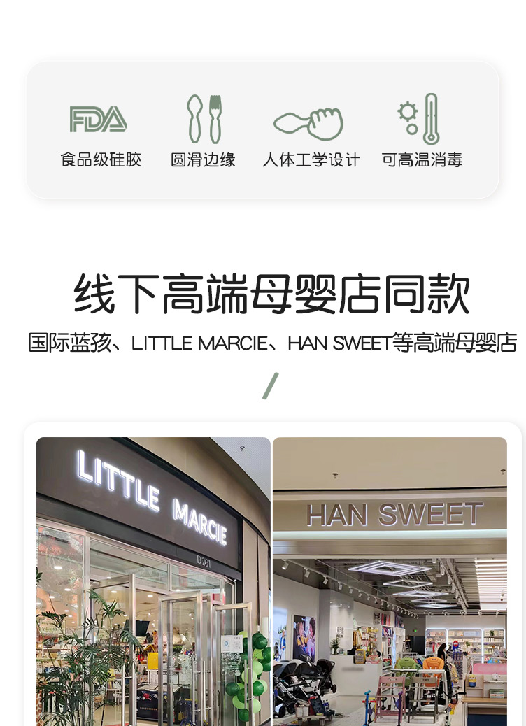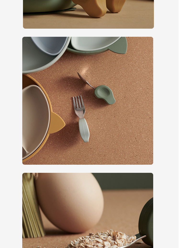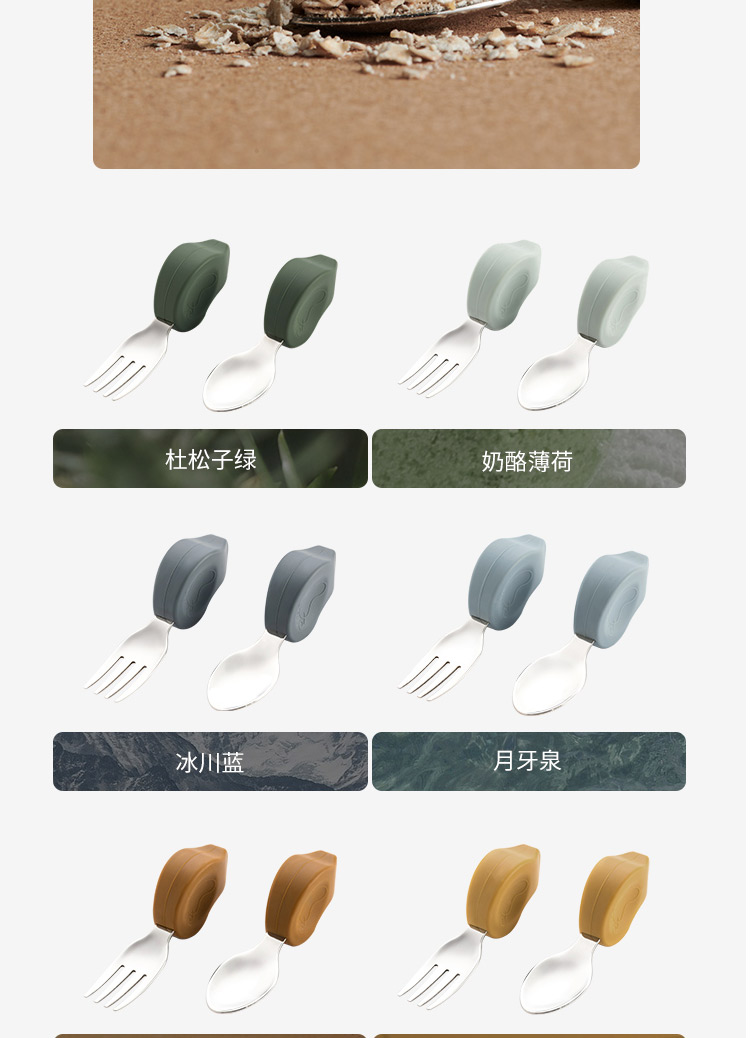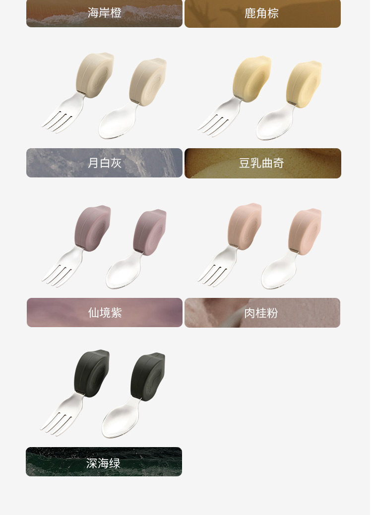 Qlittle宝宝学吃饭短柄叉勺婴儿训练勺叉不锈钢儿童餐具 6m+